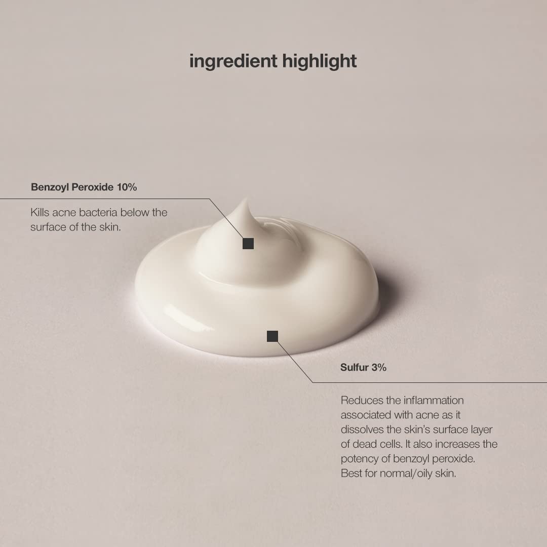 - Powerful 10% Benzoyl Peroxide Formula – Helps to deeply cleanse and visibly clarify the skin by reducing surface buildup.