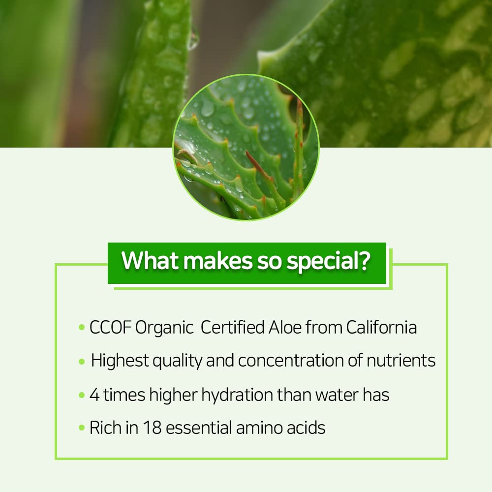 - ✔️ RELIEVING OUR SKIN WITH ALOE VERA: Contains California Aloe leaves extract. Under the strong sunshine of California, it grew up with the highest concentration of nutrients. Contains 4 times higher hydration than water. CCOF certified how safe ingredient this aloe is