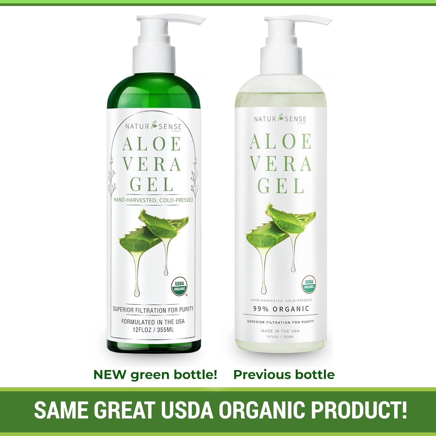 NaturSense USDA Organic Aloe Vera Gel from 100% Pure Aloe. Deep Hydration, Effective Moisturizing. Great for Hair, Scalp, Face, Dry Skin, Acne, Sunburn, Sensitive Skin. Unscented, 12 oz.