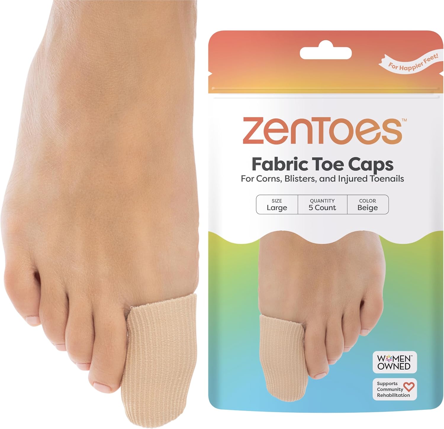 ZenToes Fabric Toe Protectors | Promotes Skin Hydration & Blister Prevention | Medical-Grade Gel Lining | Washable & Reusable Corn, Callus & Ingrown Toenail Relief Between Toes | Large, 5-Pack