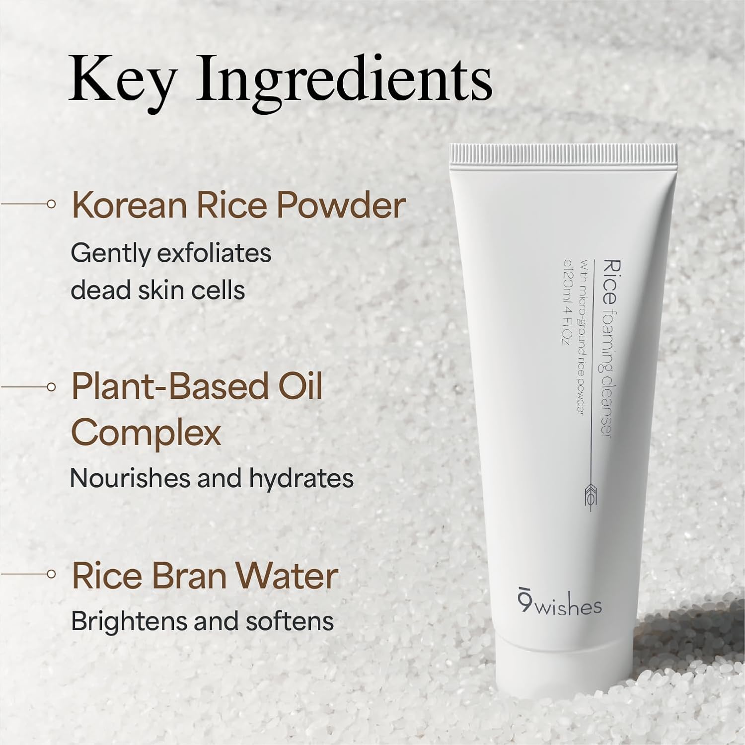 9Wishes Rice Foaming Cleanser - Pore Cleanser with Real Rice Powder for Gentle Exfoliation and Blackhead Removal, Korean Skin Care, 4 fl oz