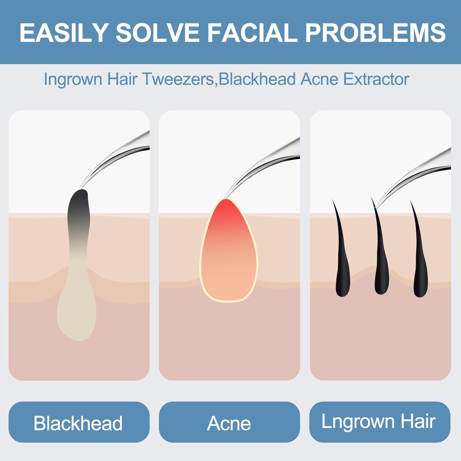 - ♥ 【Non-slip Handles】:Black head remover for face work precisely, pimple popper tool blackhead tweezers has a non-slip feature, the diamond-shaped texture help us press better, ensuring every step can be done with best control, avoid pimple extractor to harm the skin.
