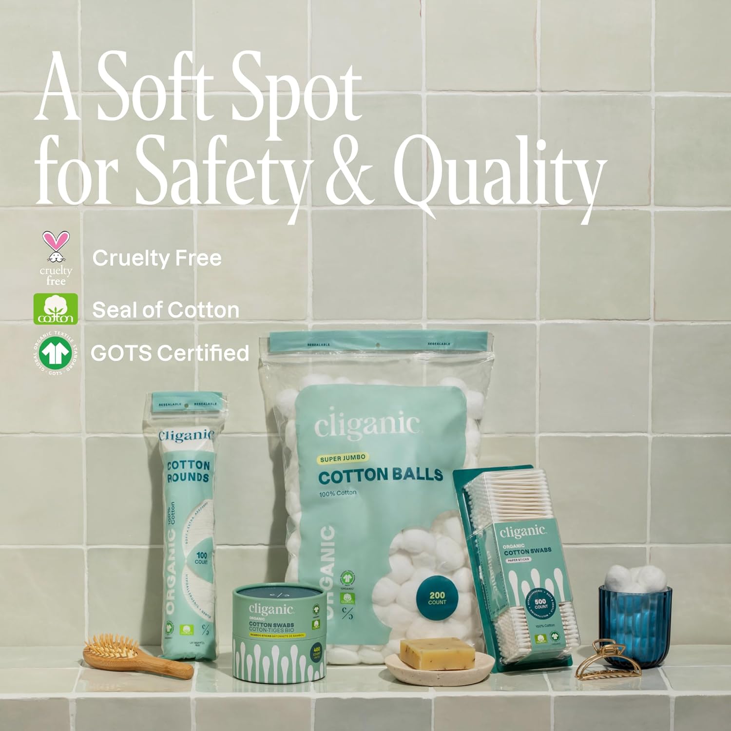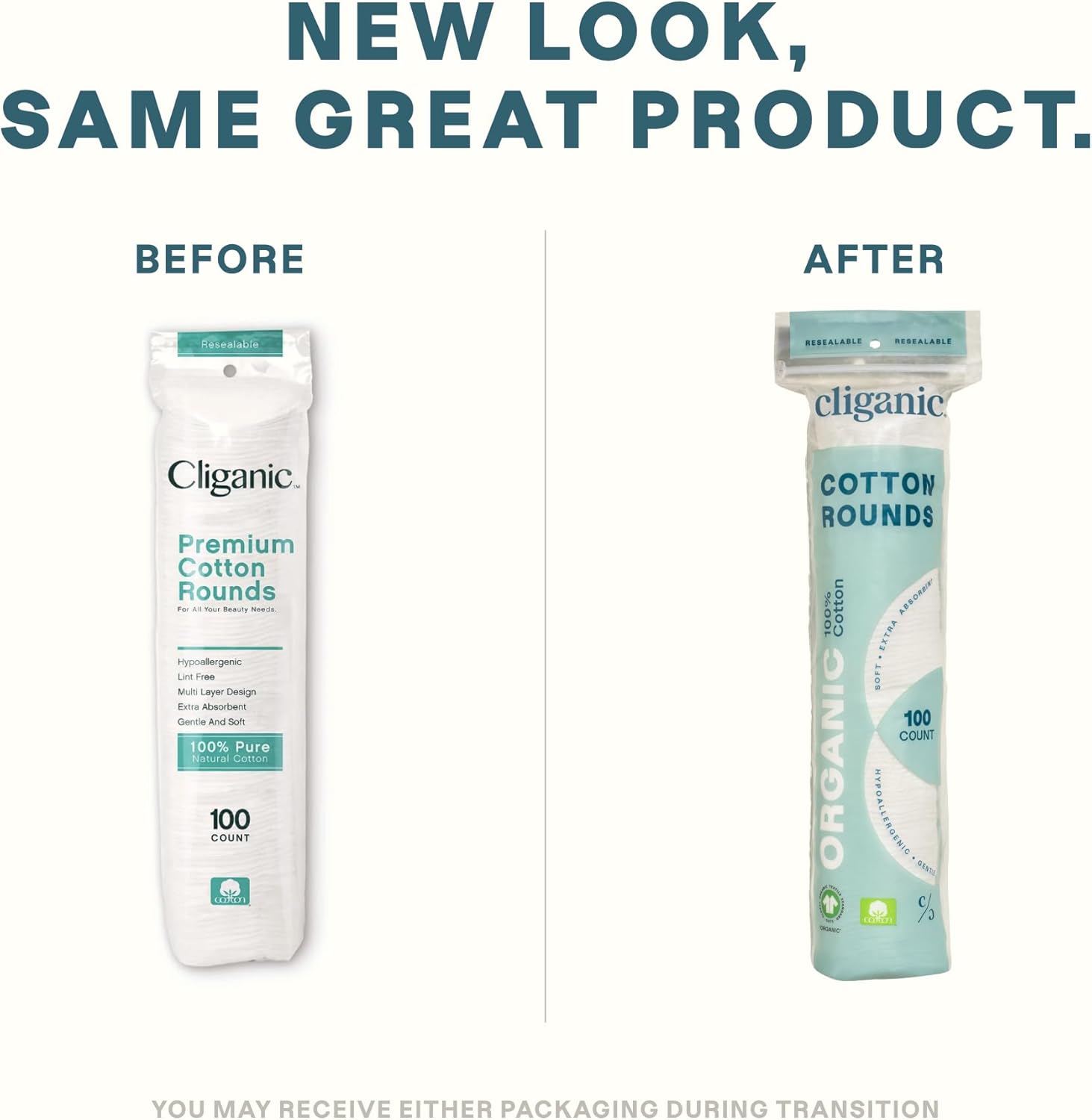 Cliganic Organic Cotton Rounds (300 Count) Makeup Remover Pads, Hypoallergenic, Lint-Free | 100% Pure Cotton (Packaging May Vary)