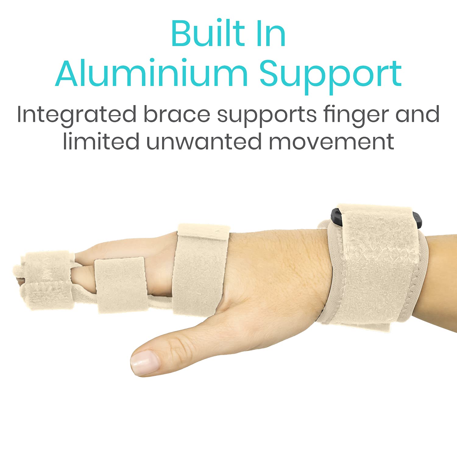 - INTEGRATED ALUMINUM SUPPORT: Designed to provide superior support, the splint features an integrated aluminum brace. The long, 6.25” aluminum brace immobilizes the affected finger joint to prevent tendons from catching and the joint from bending to promote healing and reduce pain and discomfort.