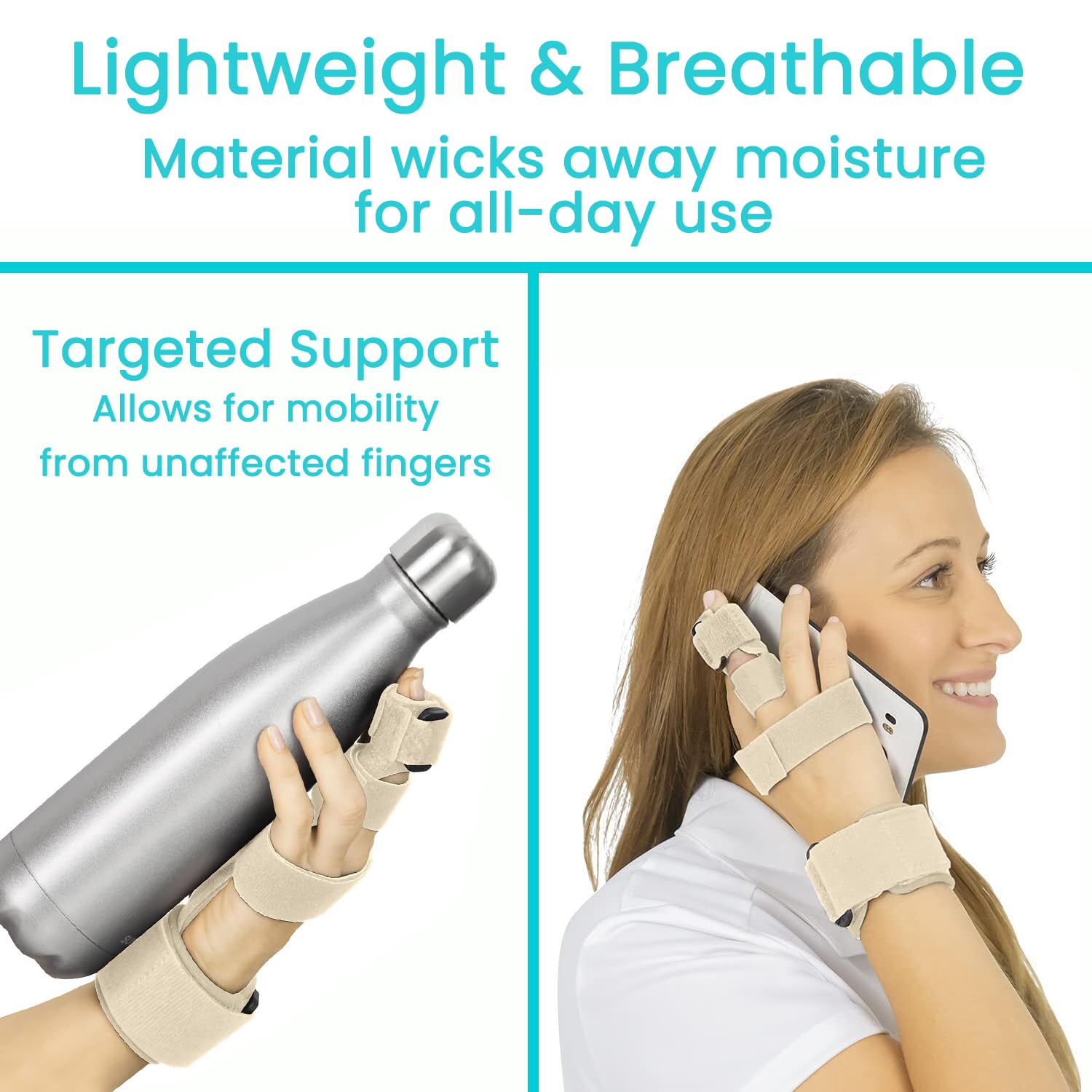 - LIGHTWEIGHT COMFORT BLEND: Constructed with a lightweight, breathable neoprene blend, the trigger finger splint is suitable for use throughout the day and night. The soft, comfort blend wicks away moisture and is lightly padded for all-day comfort.