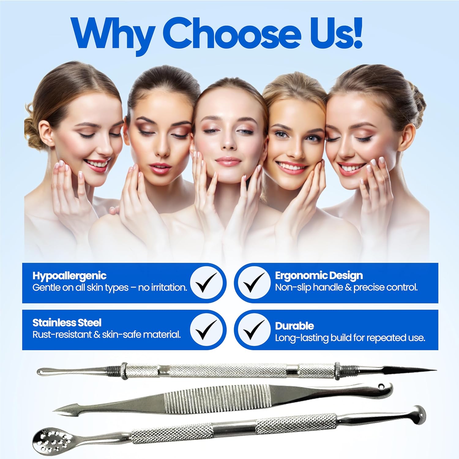 - Durable: The pimple popper tools are made from stainless steel, It won't cause issues, our acne extractor Tools are great for any occasion, blackhead extractor blackhead remover flat tool blackhead remover tools scraper pimple extractor pimple extractor spatula pimple tool pimple tools extractor metal blackhead extractor black head remover for face.