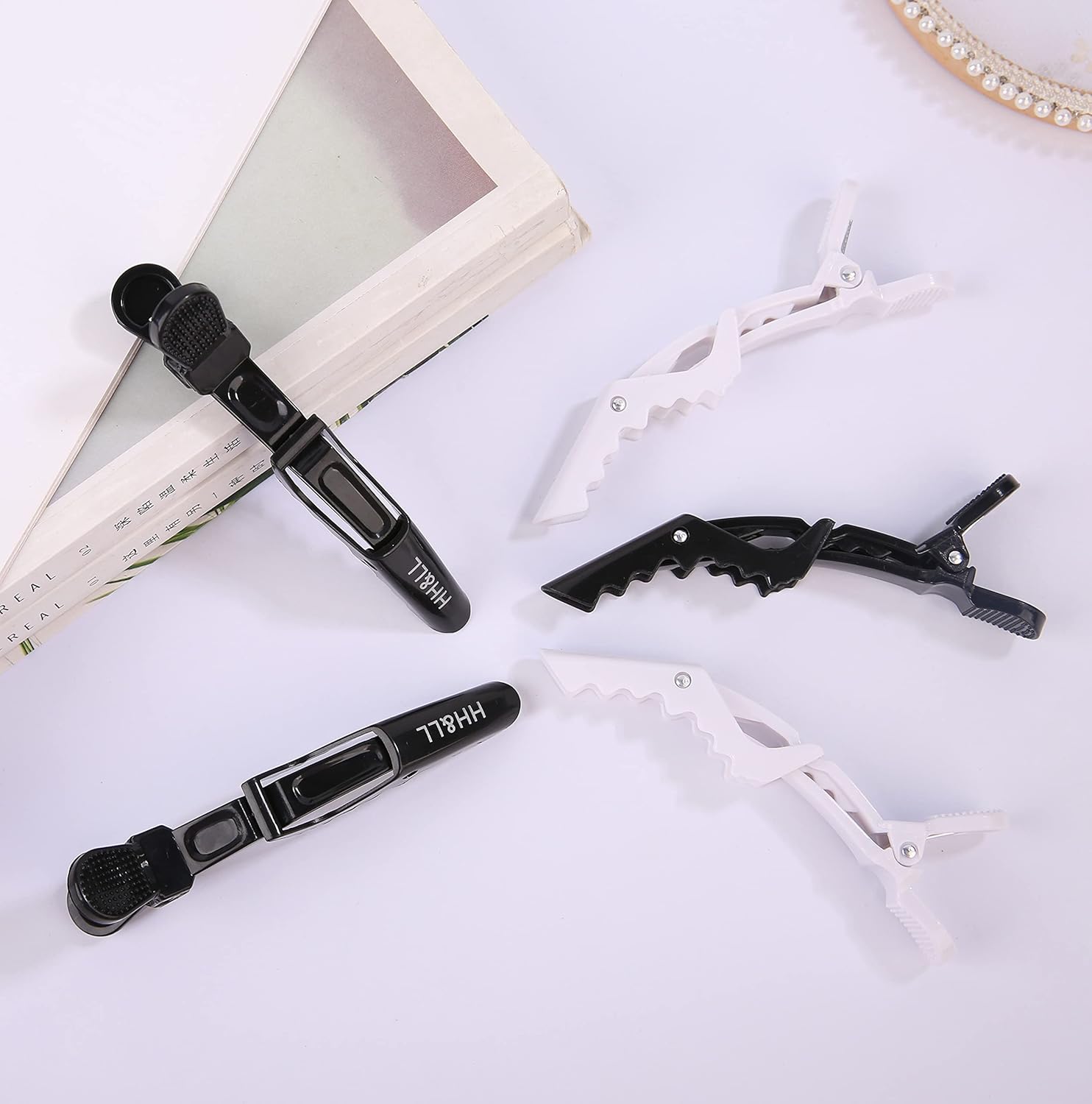 HH&LL Hair Clips for Women – Wide Teeth & Double-Hinged Design – Alligator Styling Sectioning Clips of Professional Hair Salon Quality - 10Pack (Black+White)
