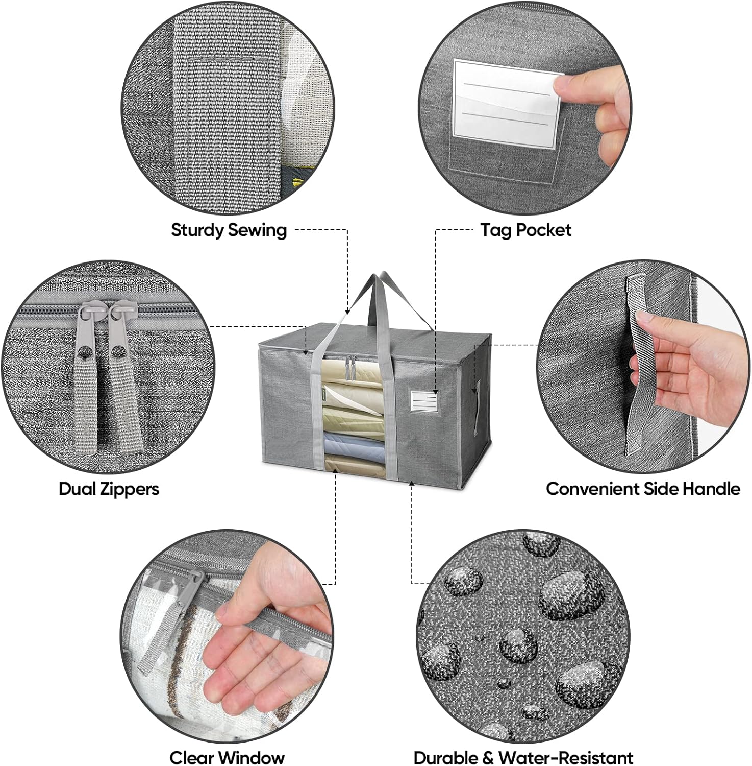 BALEINE 4-Pack Oversized Moving Bags with Reinforced Handles, Heavy-Duty Storage Tote Moving Supplies for Packaging, Camping (Gray w/Window, 4-Pack)