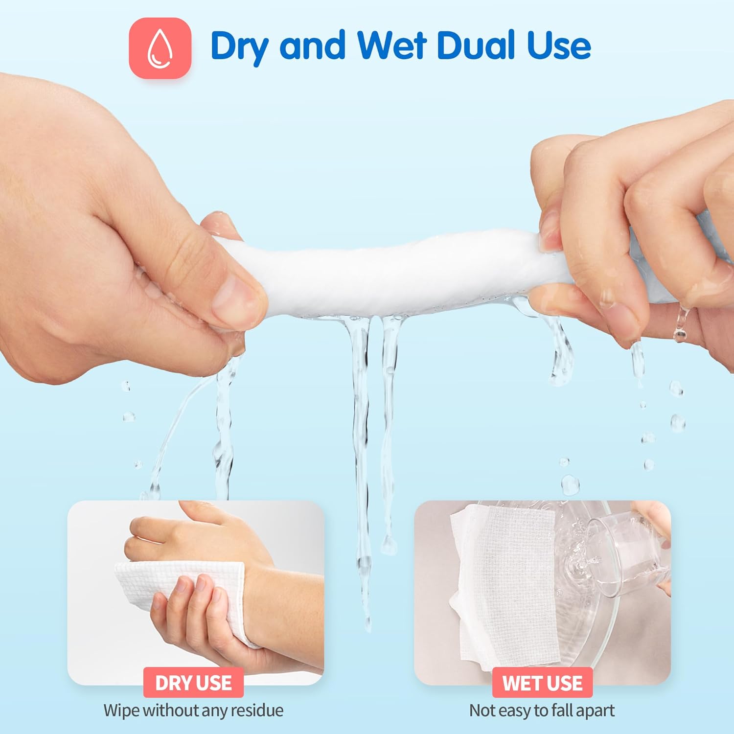 - ALL-PURPOSE FACIAL CLEANSING WIPES: Our facial towels can serve a variety of purposes. They work well with toners and essences, useful for skin care, facial cleansing, personal care, etc. With strong absorption, they can work as dry and wet towels to cleanse or dry your face. Sturdy enough and won't give off fibers or fall apart when wet. Besides, you can use them to clean up the vanity, sink, and mirror, or wipe off your hands after face washing for more uses.