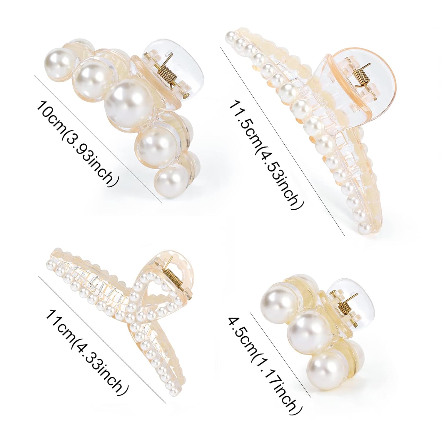 Mehayi 4 PCS Large Pearl Hair Claw Clips for Women Girls, Hair Barrette Clamps for Thick Thin Hair, Fashion Hair Accessories Headwear Styling Tools for Party Wedding