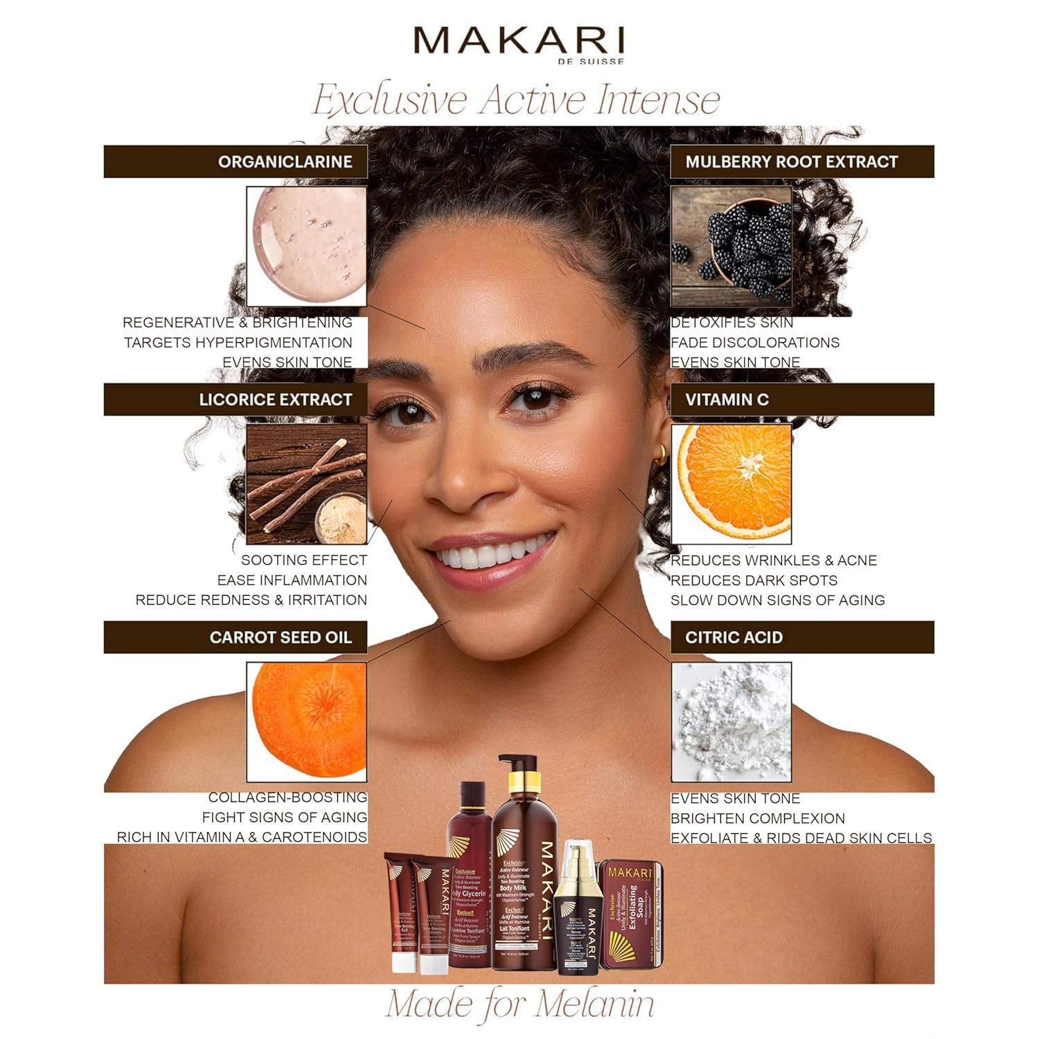 - EXCLUSIVE FORMULA: The only skincare line for melanin-rich skin with Organiclarine, our finest & most effective brightening ingredient yet; Unlock your skin's true radiance with our gift set for women