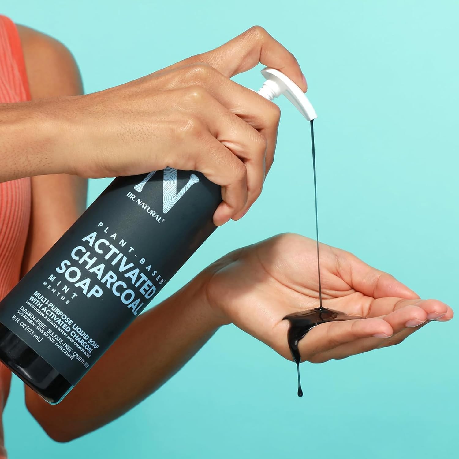 Dr. Natural Activated Charcoal Liquid Soap - Combat Acne and Blemishes - Deep Cleansing Body Wash - Gentle Body Soap for Clear Skin - Mint - 16 oz..