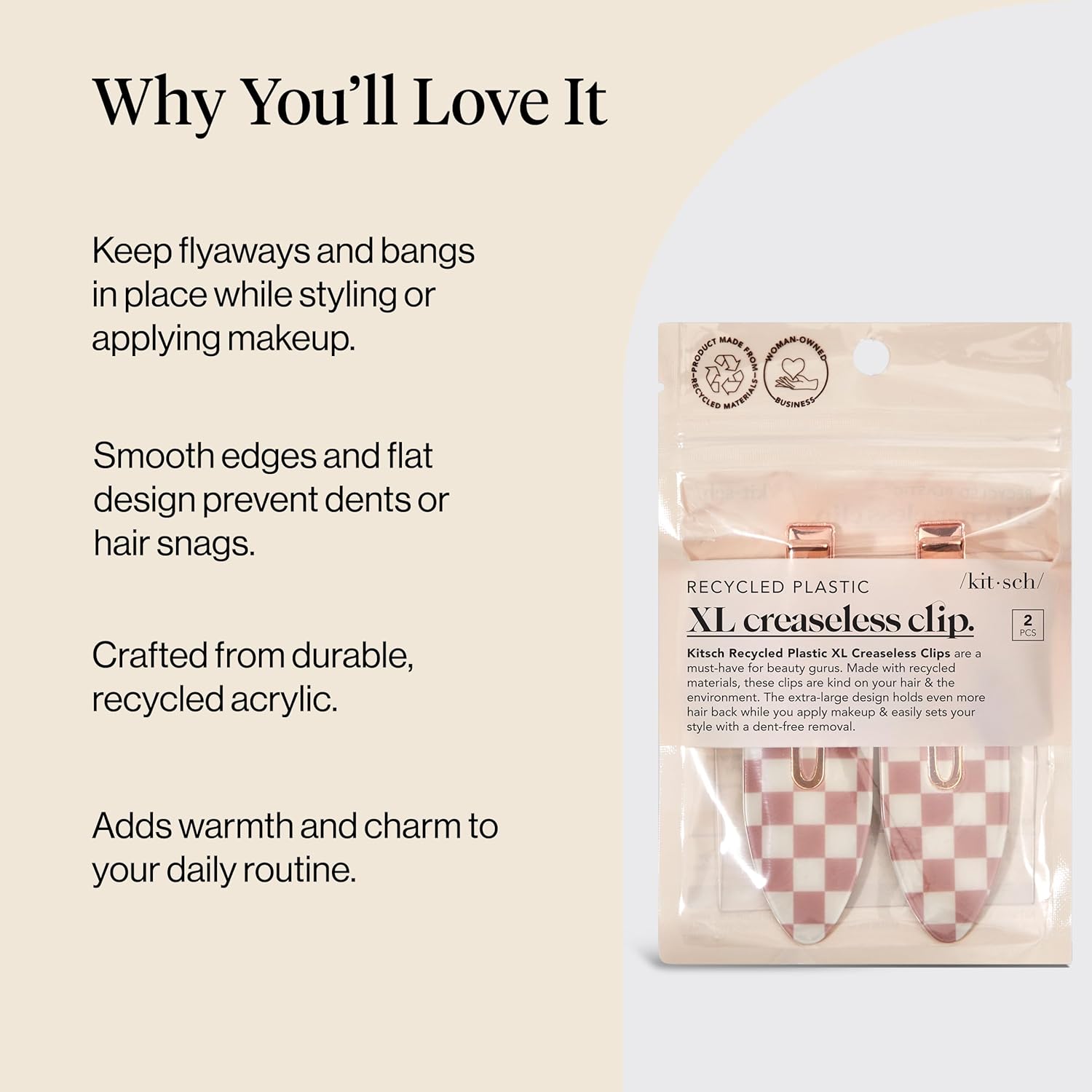 - YOUR HIGH-QUALITY HAIR CLIPS: Our Kitsch XL Creaseless Clips are made with recycled materials, our no crease hair clip is kind on your hair & the environment. These flat, creaseless hair clips are perfect for keeping your hair in place without leaving a crease.