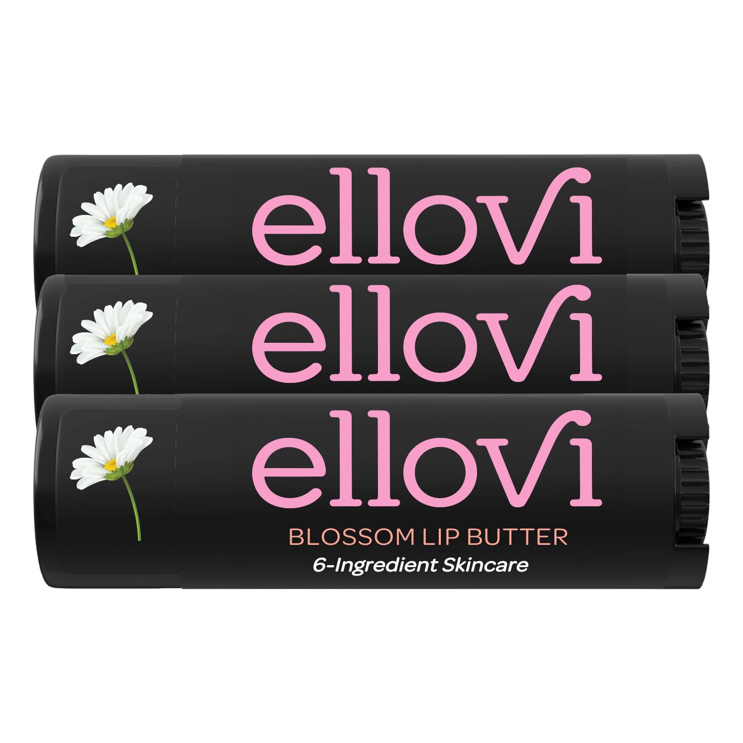 Ellovi Natural Lip Butter Lip Balm - Blossom - Pure Enough to Eat - Made With Just 6 Vegan Ingredients - Moisturizing Lip Care for All Day Hydration (3-Pack)