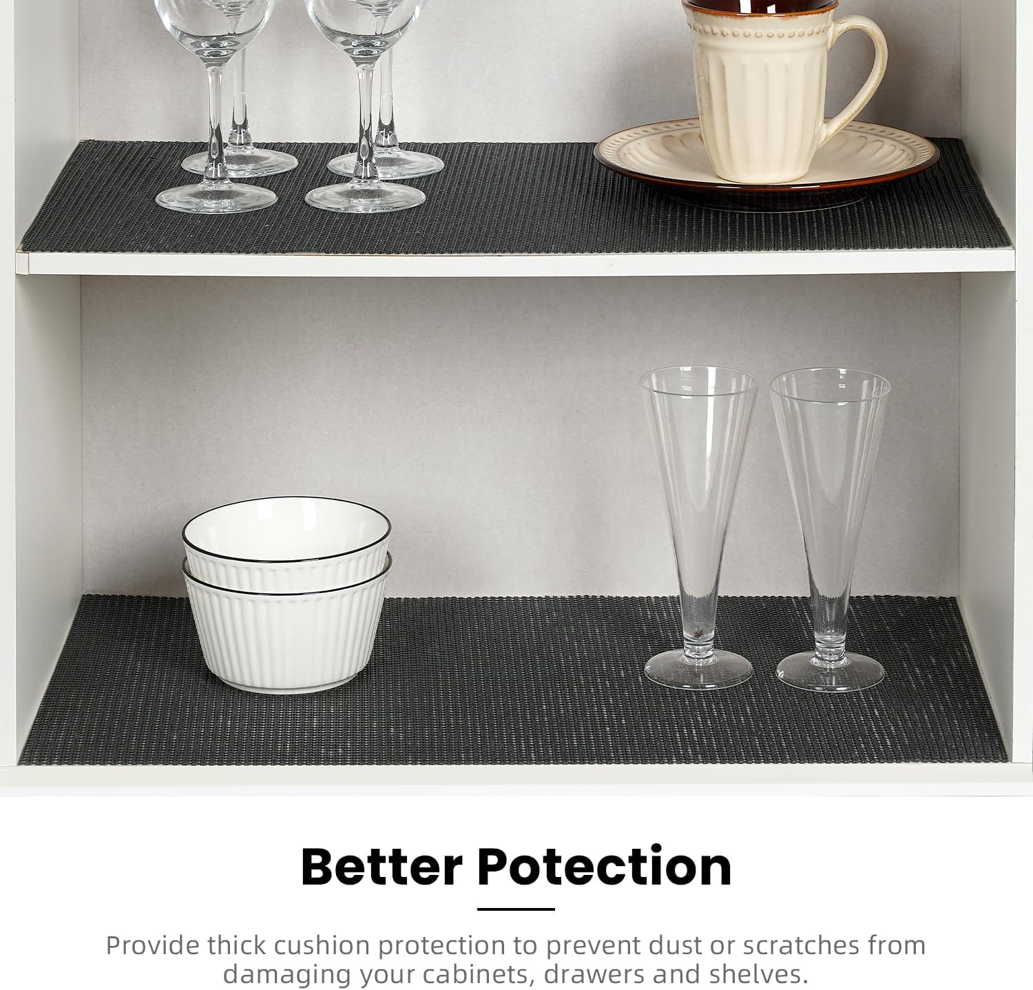- PREMIUM MATERIAL - Made of high-quality PVC material, and won't deform, ensure long-term use without tearing; always lay flat and won't warp or wrinkle over time like other materials; open grid structure allows the surface to breathe while providing thick cushioning protection to prevent dust, chips, marks and scratches from damaging your cabinets, drawers and shelves.