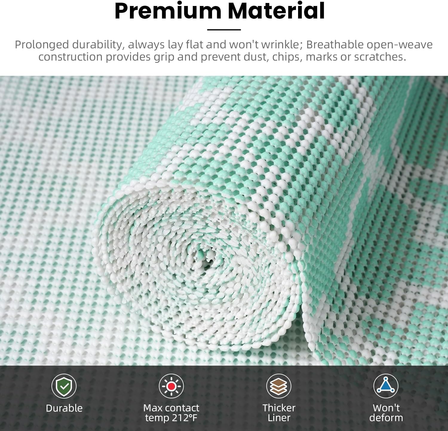 - PREMIUM MATERIAL - Made of high-quality PVC material, and won't deform, ensure long-term use without tearing; always lay flat and won't warp or wrinkle over time like other materials; open grid structure allows the surface to breathe while providing thick cushioning protection to prevent dust, chips, marks and scratches from damaging your cabinets, drawers and shelves.