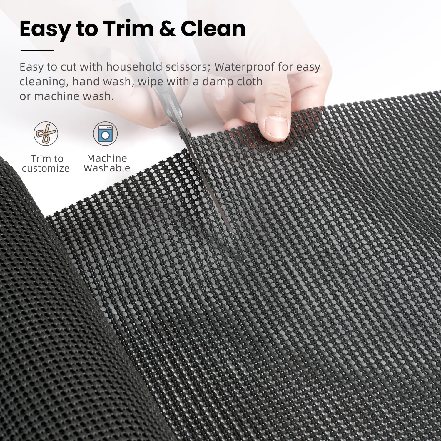- EASY TO TRIM & CLEAN - Unique grid design makes it easy to cut and shape to the exact size with household scissors, easily install the liner where you want it, such as a drawer or kitchen cabinet. Truly carefree to clean, you can just wipe with a damp cloth to clean it.