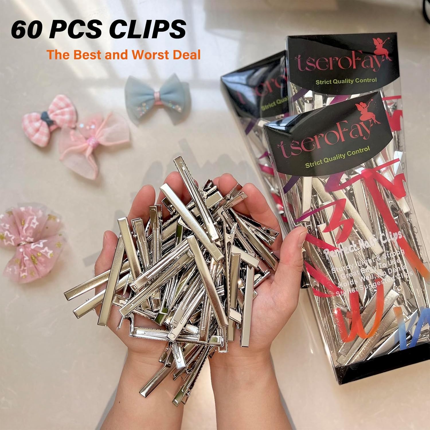60Pcs Alligator Hair Bows & Clips for Crafts (7.5cm/ 3"), Gator Metal Clip, Hairdresser Supplies for DIY Bow Making, Large Plain Clips for Dreadlock Dreads Retwist 3"