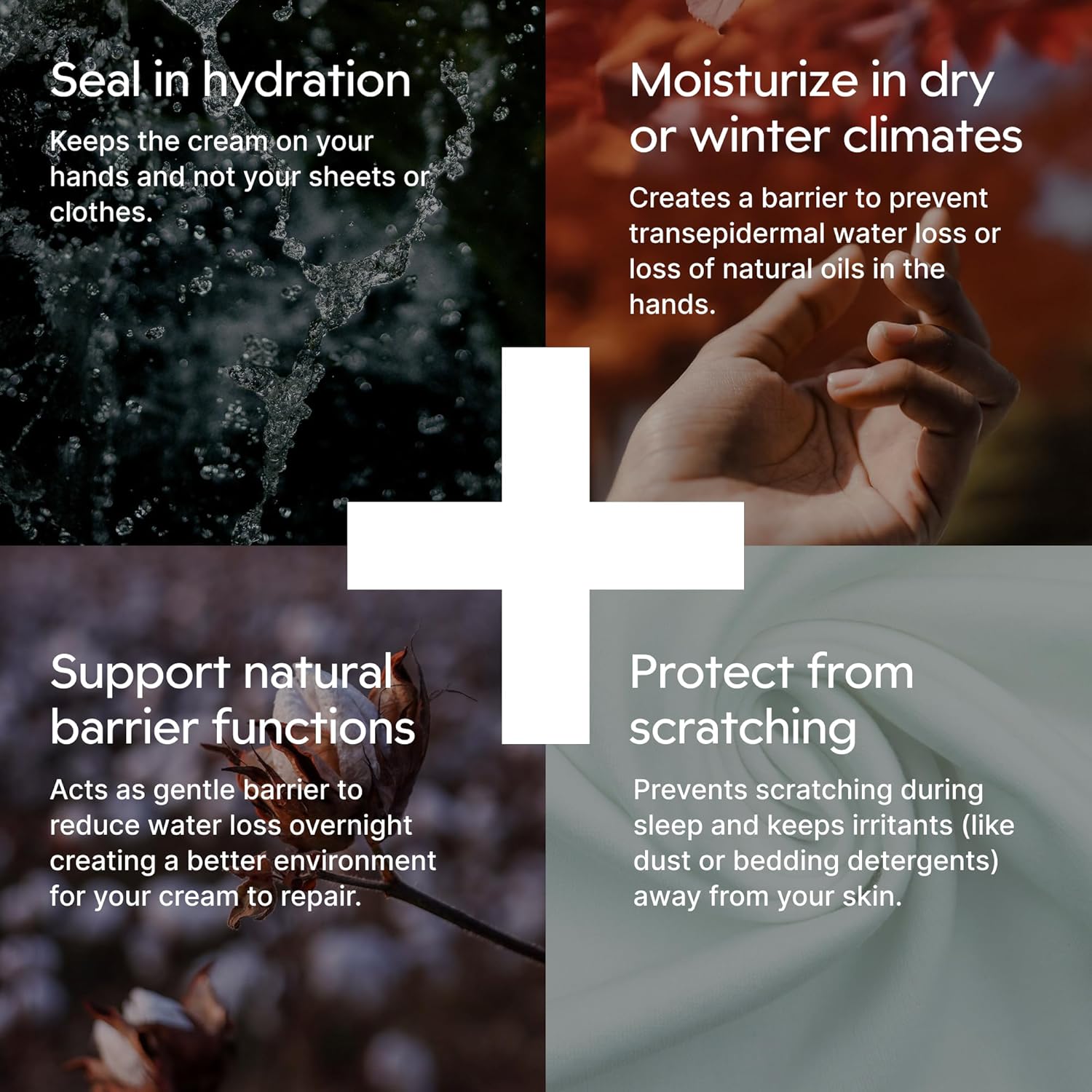 - Natural Hand Therapy: Embrace the benefits of these spa gloves by pairing them with your favorite lotion for overnight hand repair. Designed for natural restoration, these moisturizing gloves for dry hands help soothe irritated skin while deeply nourishing