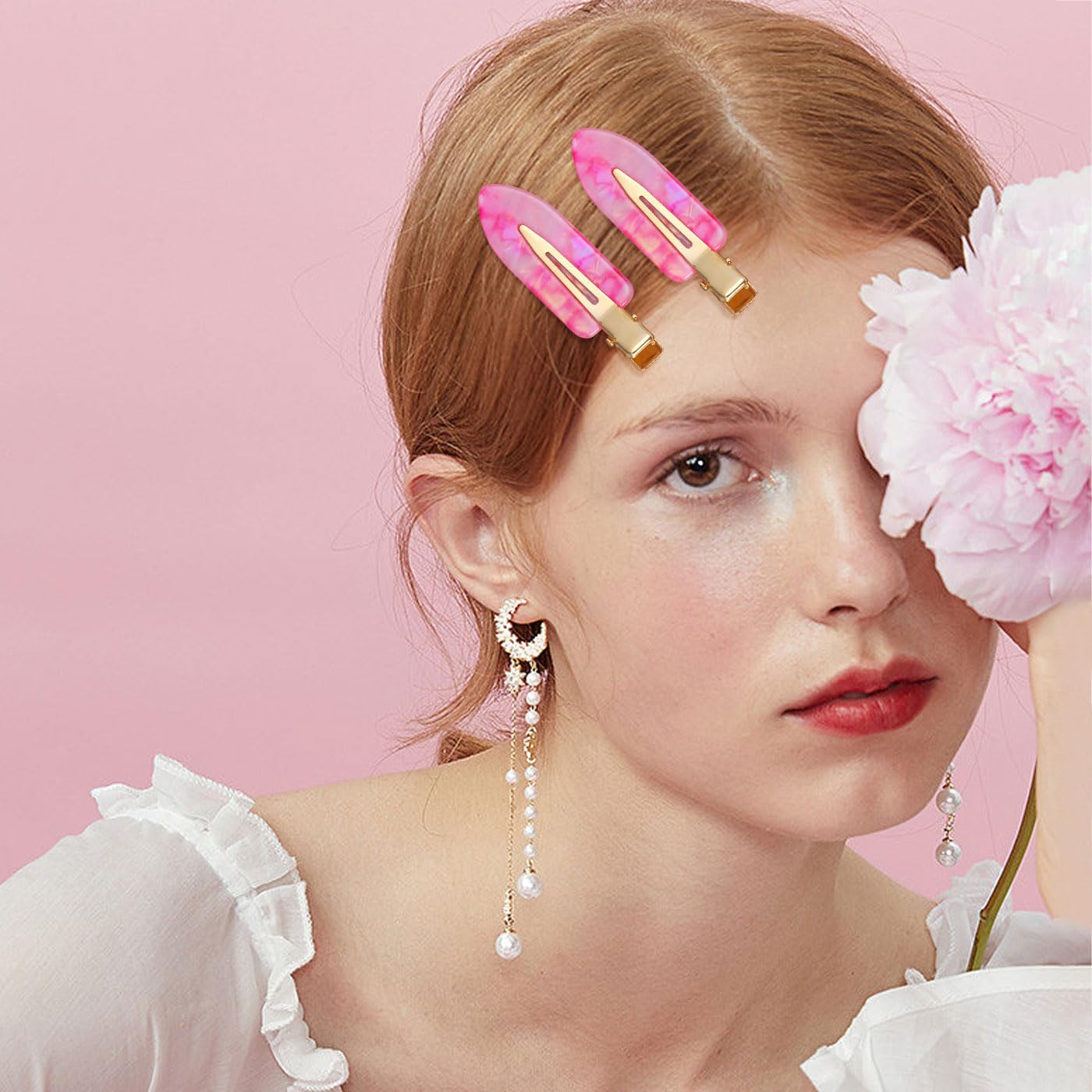 - 【Premium Material】These pink no crease hair clips are made of premium acrylic resin material which is not easy to fade, discolor. It has great textured and not easy to be damaged, lightweight and long-lasting with bright colors, can be used for a long time.