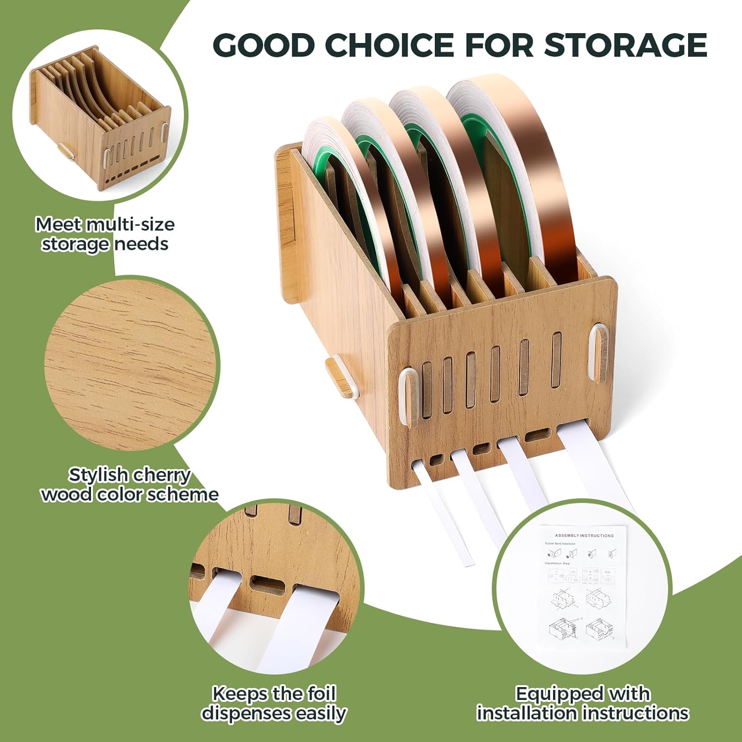 - Unique style: Foil dispenser is made of high quality wood board with a thickness of 3mm. The cherry-colored wooden planks are more harmonious with the style of the studio table. It is sturdy and can prevent damage due to external conditions and preserving its quality and longevity, helping you organize the stained glass workspace.