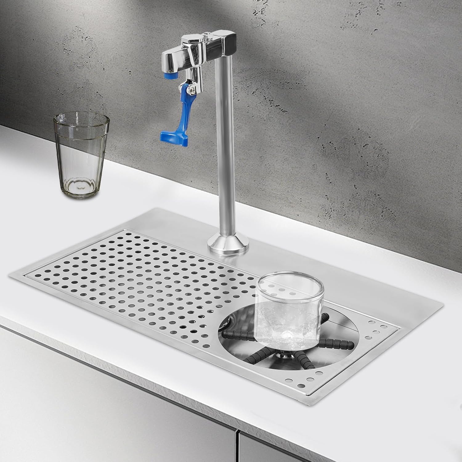 - ★【Efficient Cup Cleaning】Simply place the glass upside down over the spout, the cup washer provides a powerful high-pressure water stream to clean the cup of residual liquid dirt.