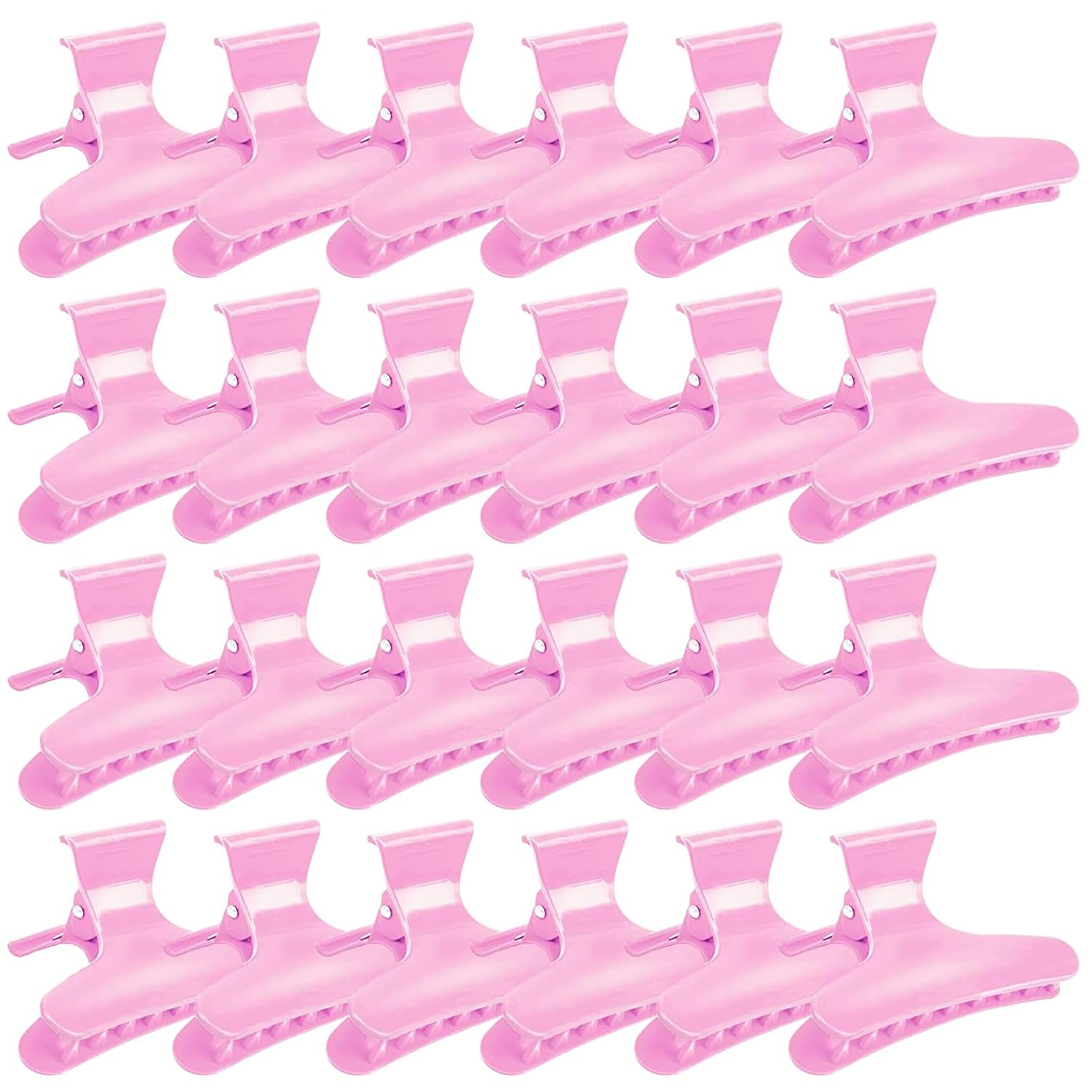 Ondder 24 Pcs Pink Butterfly Hair Clamps and Claw Clips for Styling, Sectioning, Cutting, Coloring - Pro Salon Hairdressing Tool Accessories for Women Girls