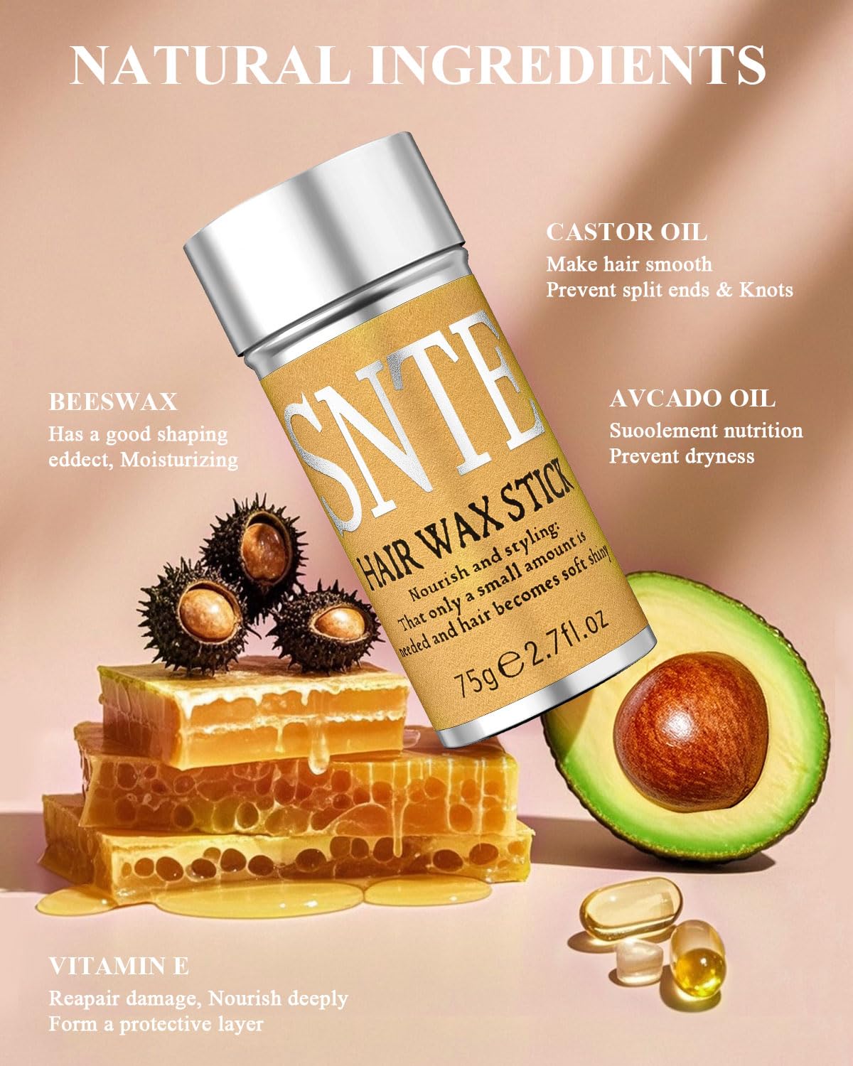 - HAIR WAX STICK: Styling & Smoothing Frizz Quickly tame flyaway hair. SNTE Wax Stick is rich in castor oil, which effectively smooths hair frizz, edge smoothing, tame baby hairs