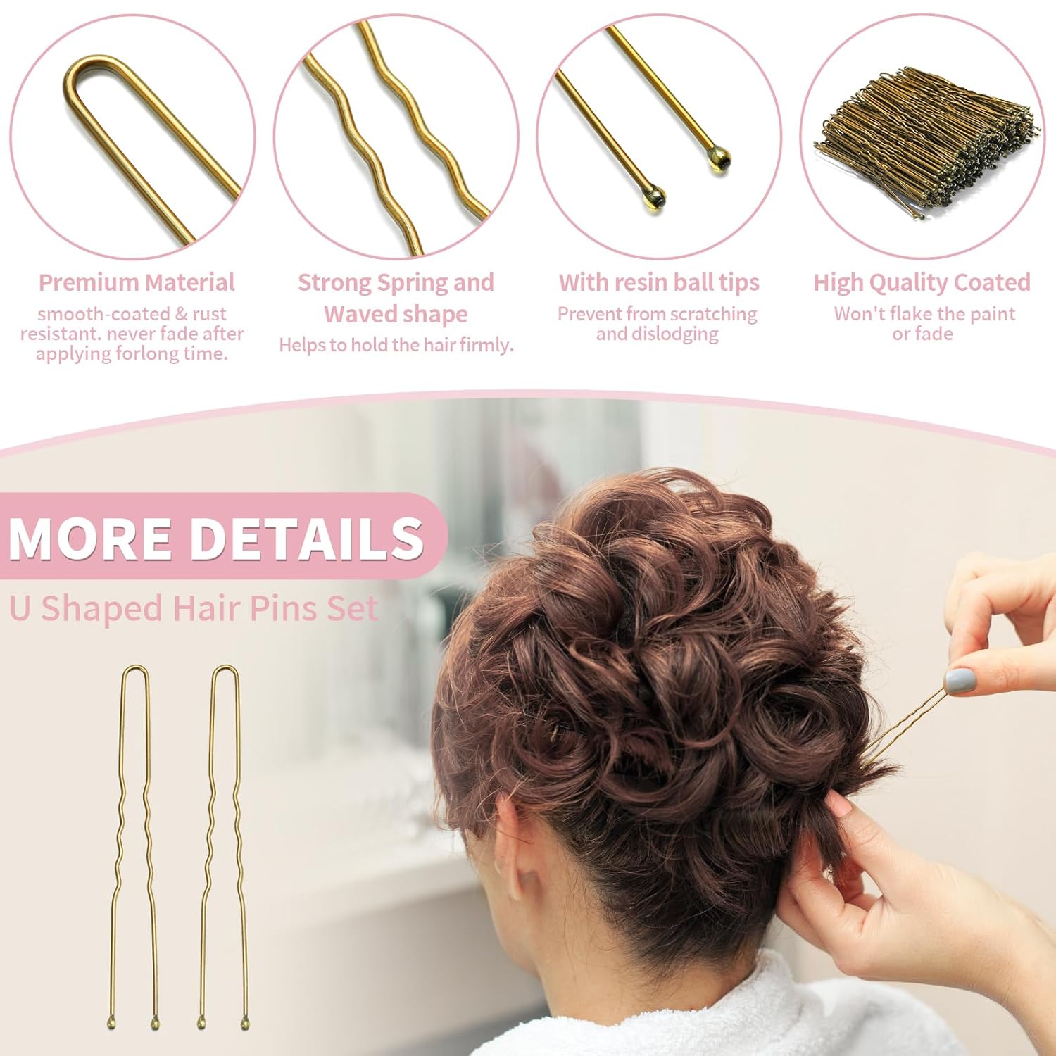 - 1. High-quality Hair Pins: Our Mia Klein U Shaped Hair Pins are made with top-notch materials, ensuring their durability for daily use. Designed to withstand even the thickest hair types, these hair pins are reliable and long-lasting. Unlike traditional lacquered pins, our hair accessories are crafted using advanced German technology, guaranteeing no paint chipping or unpleasant odors. With excellent elasticity, these pins provide a secure grip, preventing unnecessary movement or loosening throughout the day.