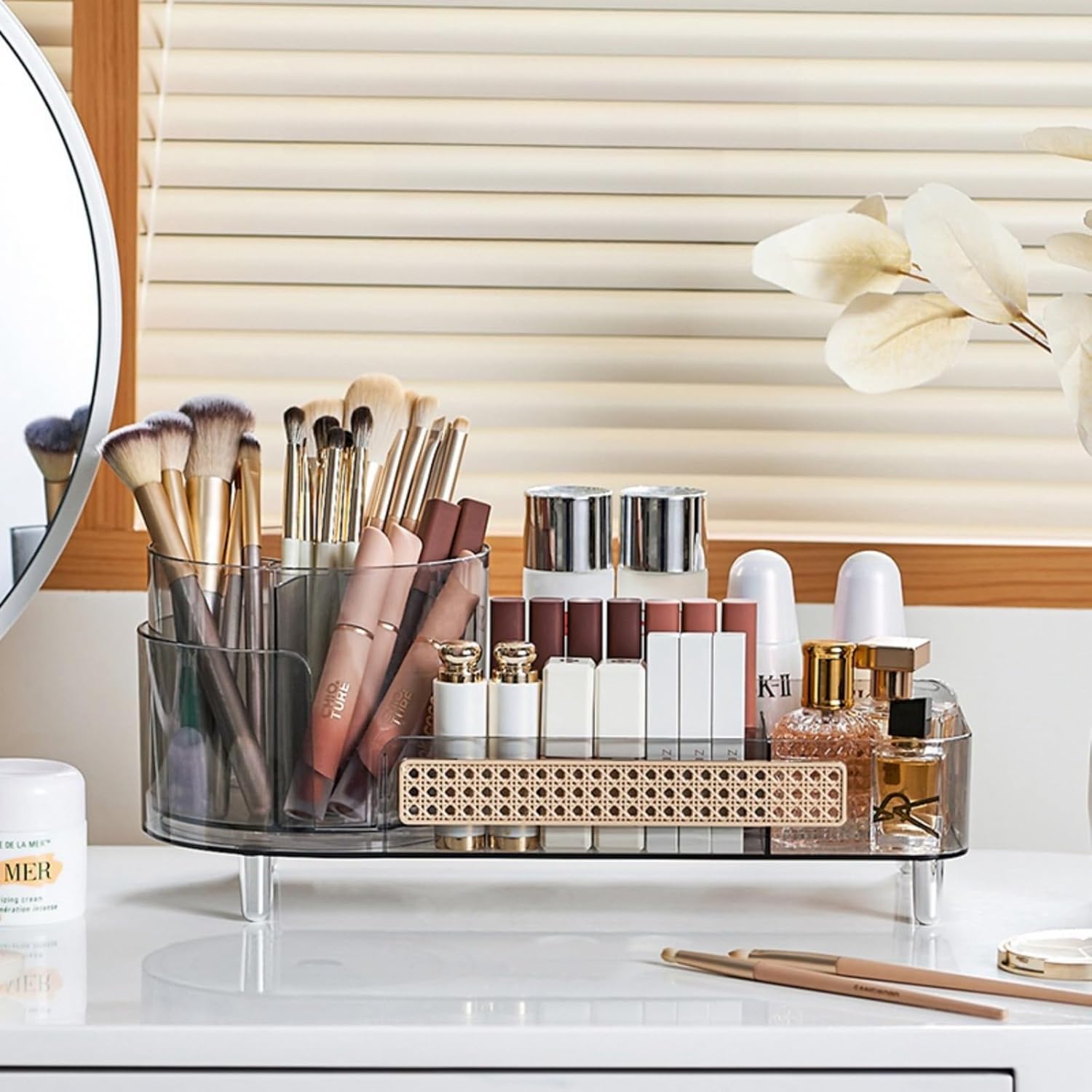 - 360° Rotating Design:Effortlessly access your makeup brushes and accessories with the convenient rotating feature,Large Capacity Countertop Skincare Organizer,making your daily routine a breeze