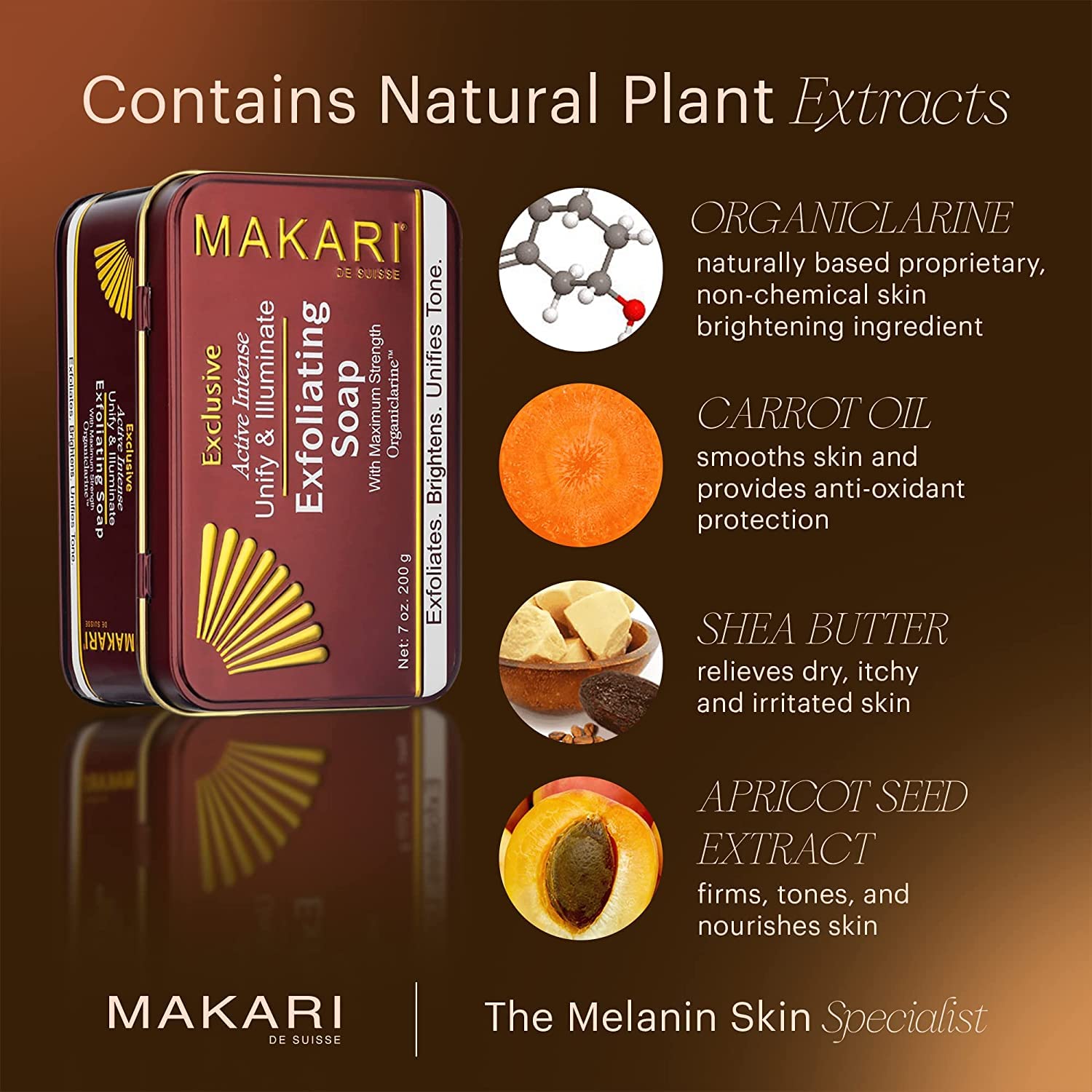 MAKARI Exclusive Active Intense Radiance Bundle: Exfoliating Soap & Tone Boosting Glycerin for Brightening, Even Skin Tone & Radiance