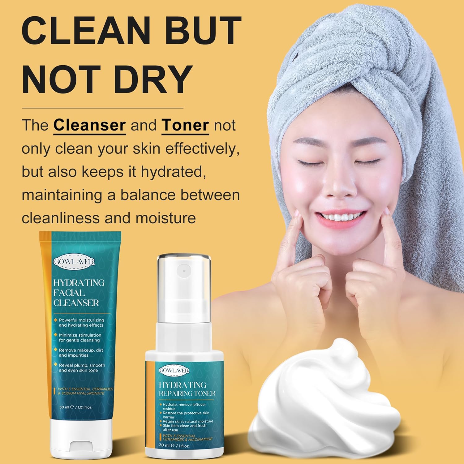 - Clean But Not Dry: The Sulfate Free, water-based Cleanser and Toner not only clean your skin effectively but also keep it hydrated, maintaining a balance between cleanliness and moisture. This results in skin that feels fresh and supple, avoiding the usual dryness after cleansing