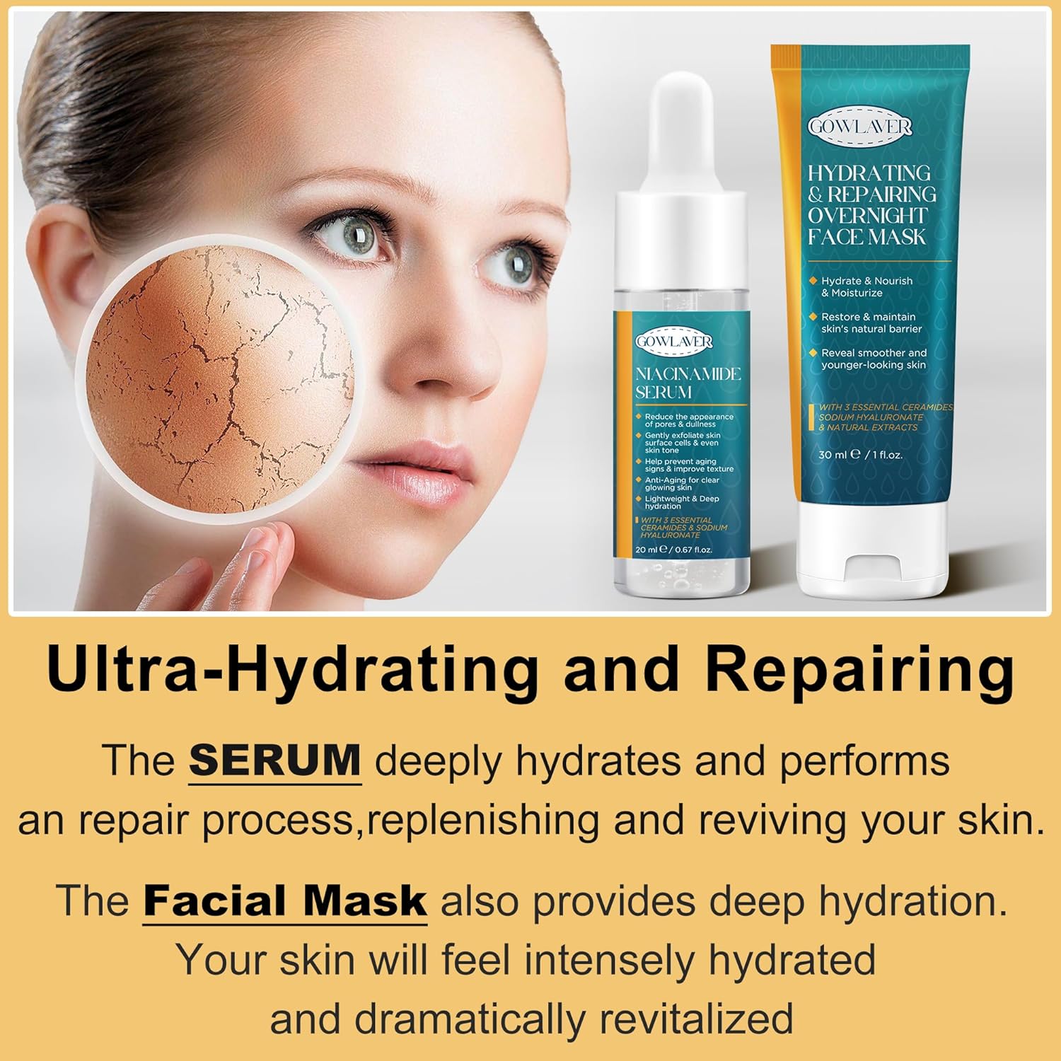 - Ultra-Hydrating and Repairing: This Niacinamide Serum deeply hydrates and repairs skin barrier, replenishing and reviving your skin—combating Dehydration & Dryness, reducing Fine Lines & Wrinkles, enhancing Lifting & Firming, and improving Uneven Skin Tone.The gentlest for dry skin,even for teens 10-12,skin care for teens 14-16 girls.The Facial Mask also provides deep hydration