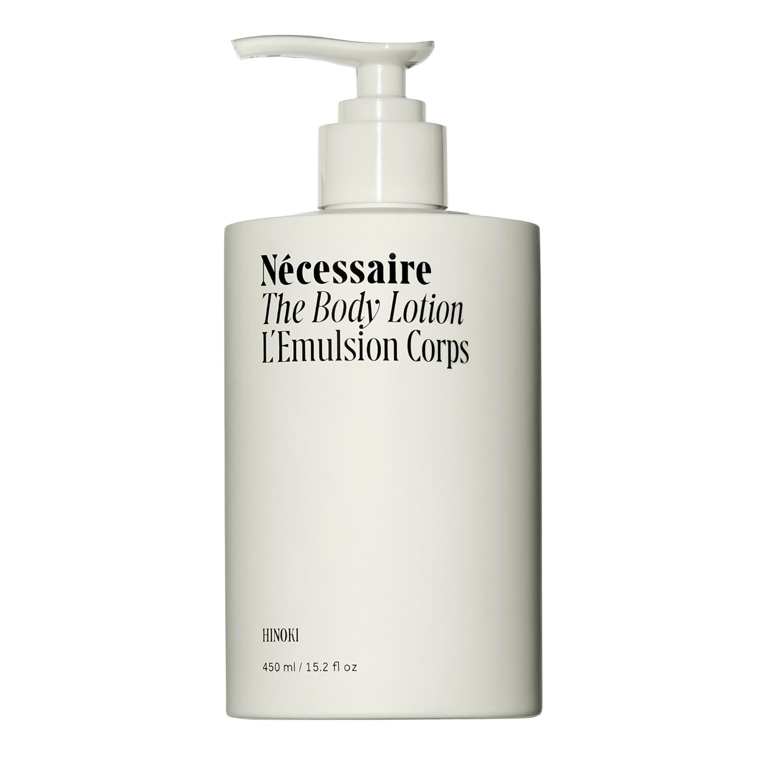 Nécessaire The Body Lotion with Pump – Hinoki Scented Body Moisturizer with Peptides, Niacinamide, Vitamins C/E & Omega 6/9 – Skin-Firming Daily Hydration – Dermatologist-Tested, Vegan – 15.2 oz