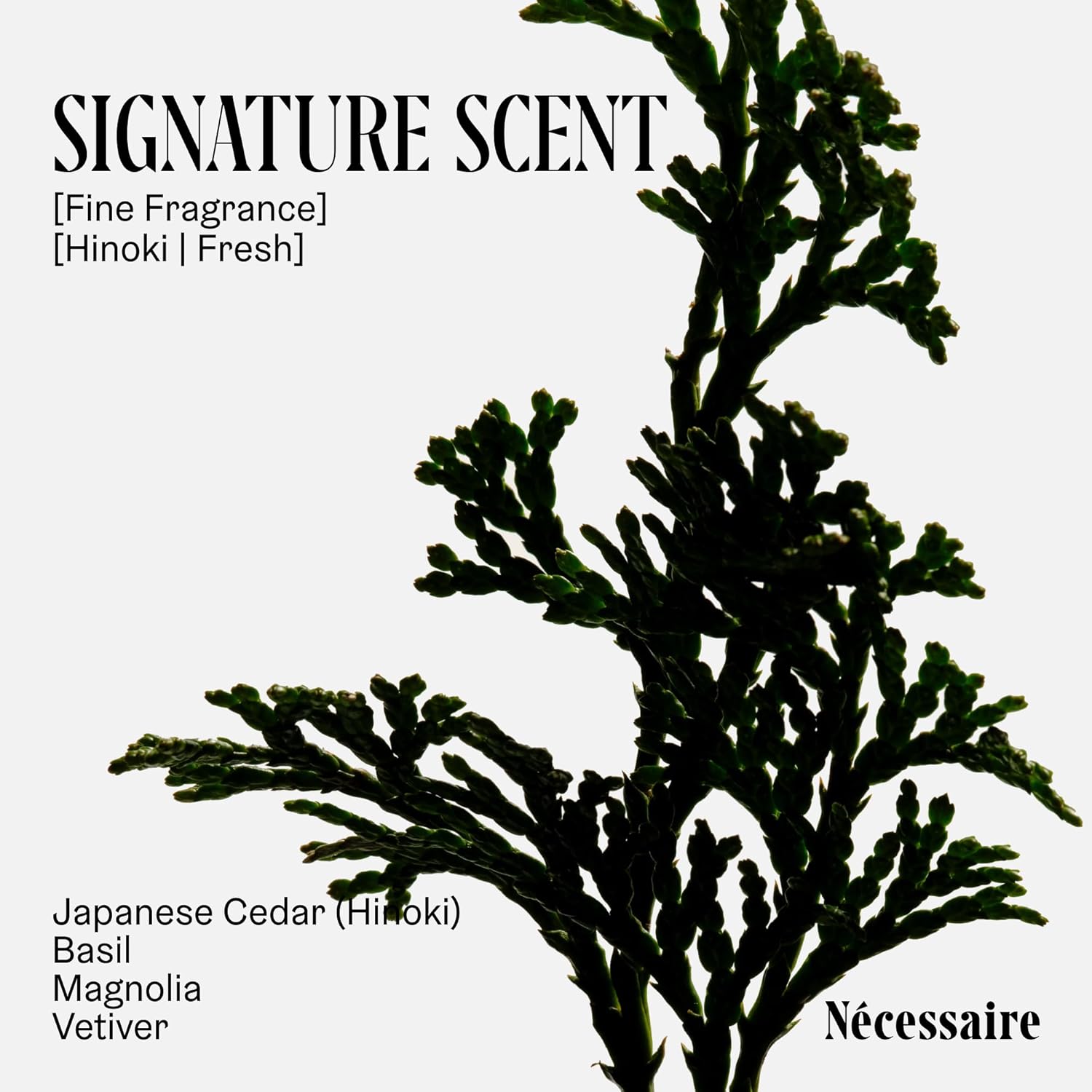 - HINOKI SCENT EXPERIENCE: Features hinoki (Japanese cedar) oil with aromatic layers of citrone, basil, and vetiver for a spa-inspired finish.