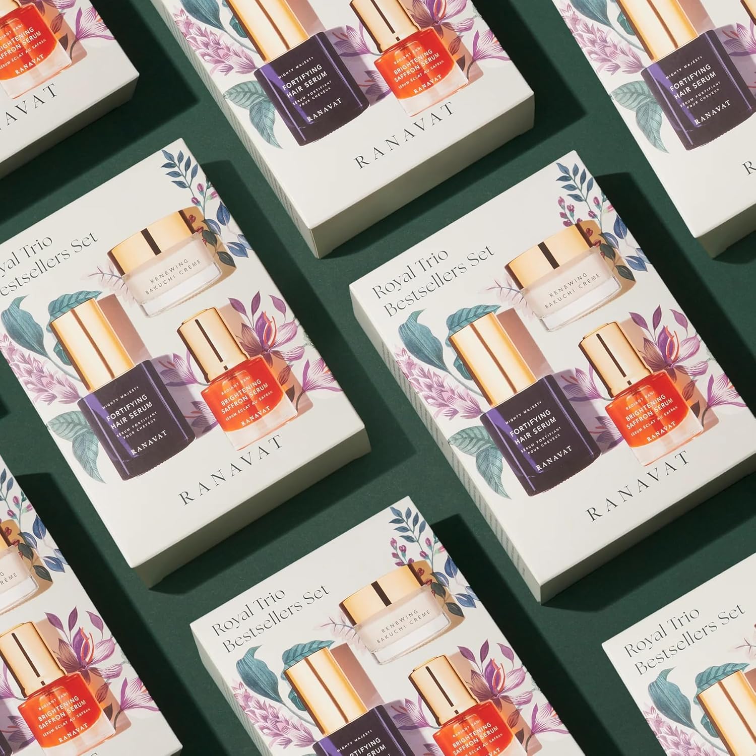 RANAVAT Royal Trio Travel Size Gift Set - Set Includes Brightening Saffron Face Serum, Renewing Bakuchi Face Cream & Fortifying Hair Serum - Clinically Tested Vegan Skincare & Haircare (3 Count)