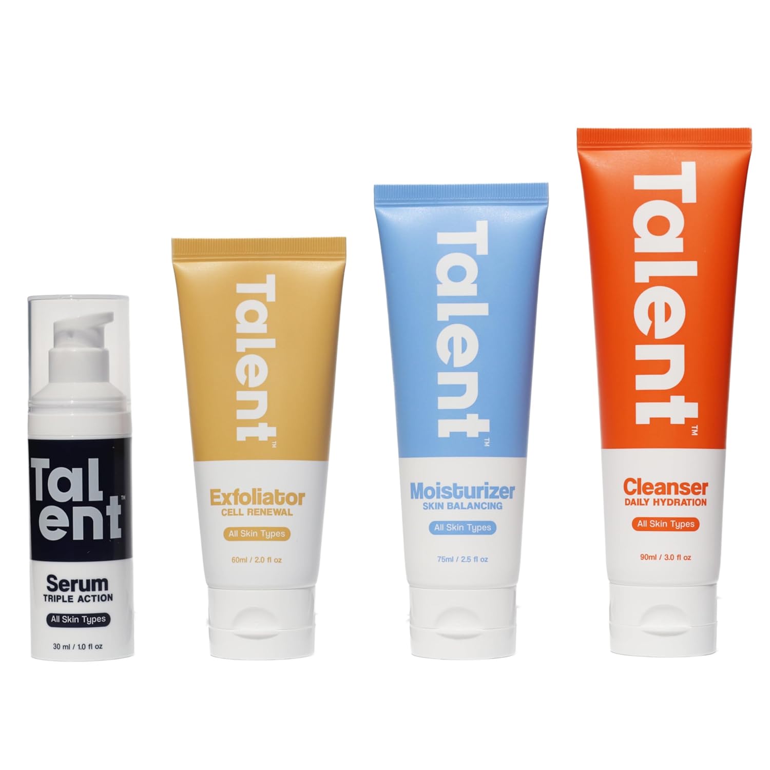 Talent Complete Skincare Set for Men – 90 Day Supply, Korean Skincare, EWG Verified, Fragrance-Free Cleanser, Exfoliator, Serum & Moisturizer, Full Routine Kit