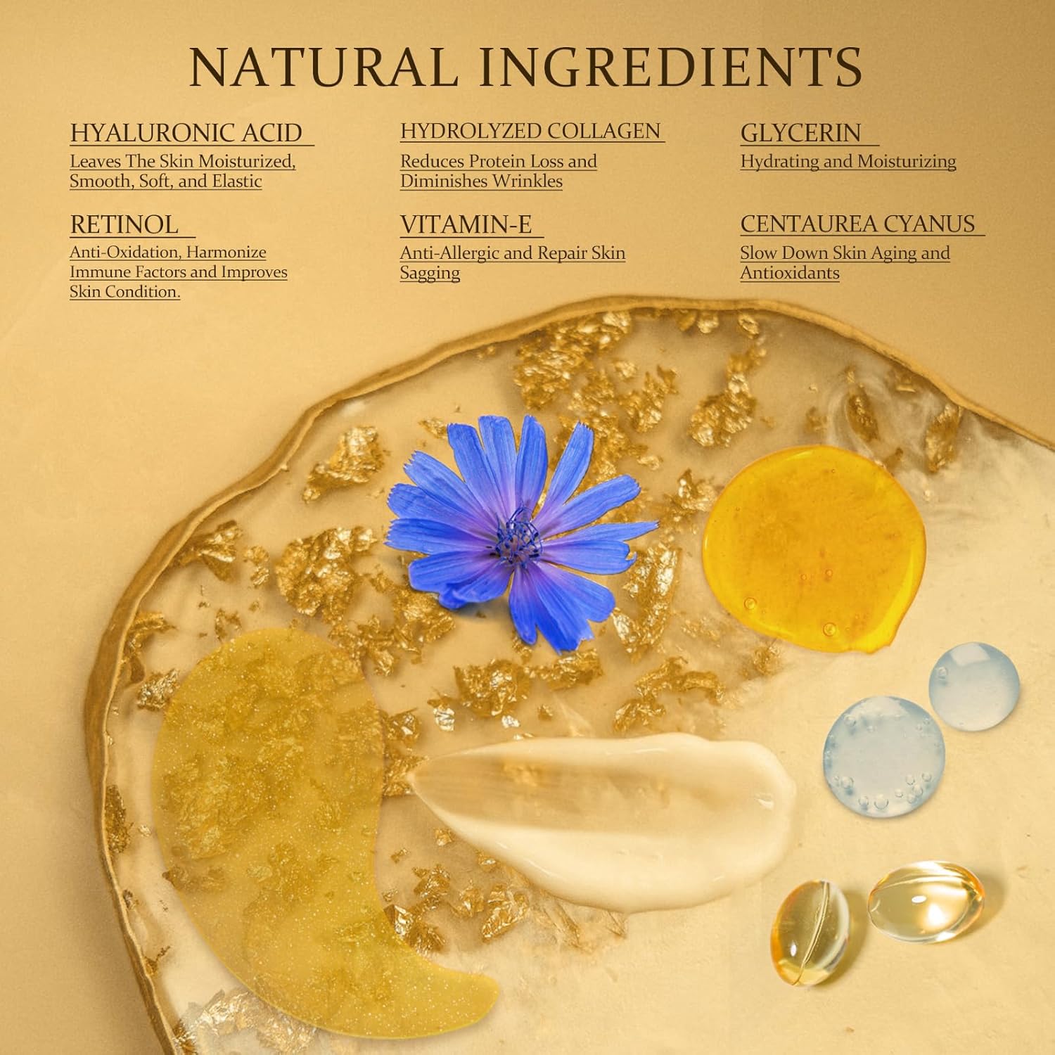 Under Eye Patches Masks - 24K Gold Eye Patch for Dark Circles & Puffy Eyesg,Fine Lines,Eye Bags, Wrinkle,Collagen Infused with Hyaluronic Acid, Hydration for Women and Men, (60 Pcs) Gold