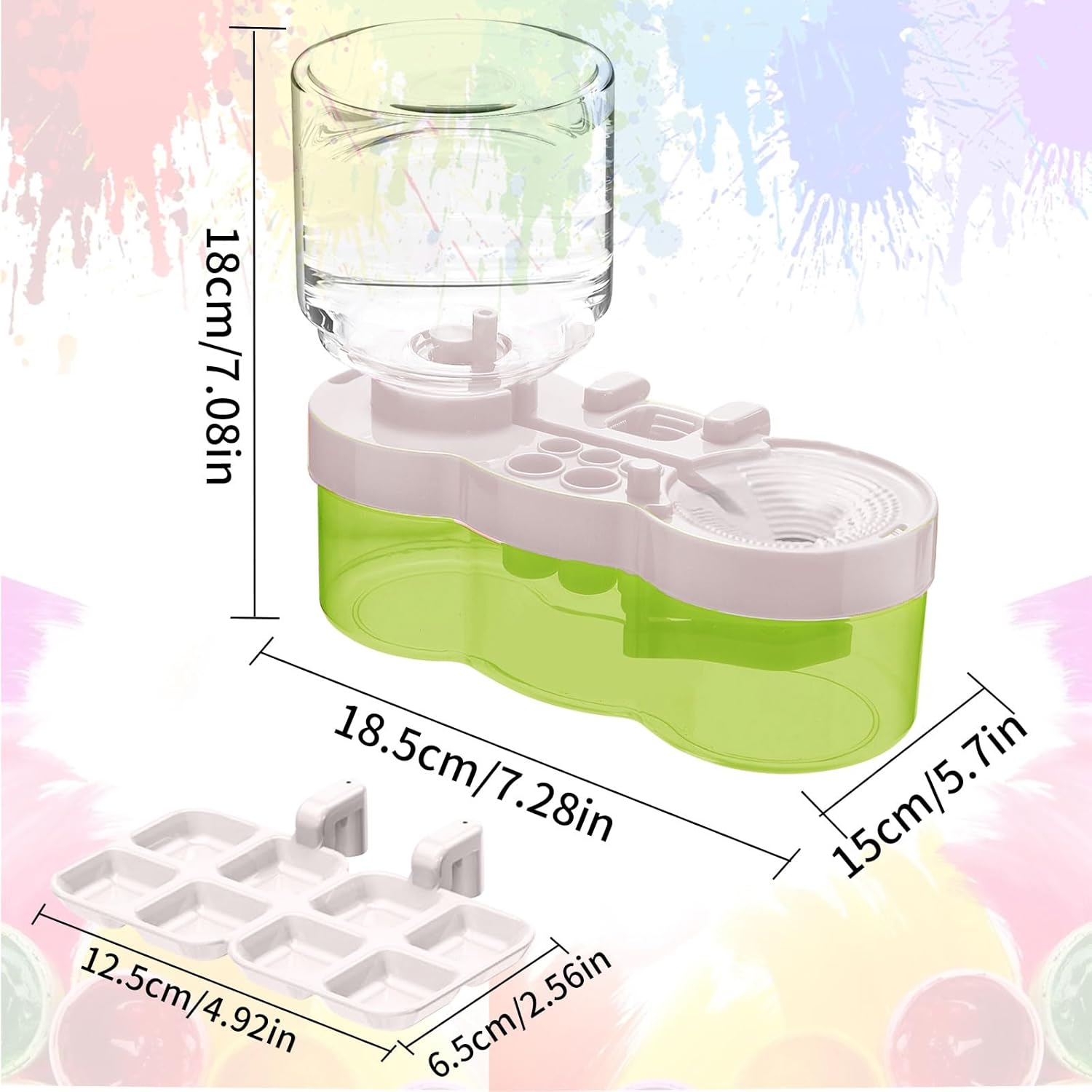 - 【All-in-1 Art Station: Clean & Organize】—— This is the ultimate hub for cleaning, storing, and organizing your tools. With a 400ml refill, 500ml wastewater tank, external brush holder, and attached paint tray, it eliminates desktop clutter and reclaims your workspace, helping you stay focused on creating.