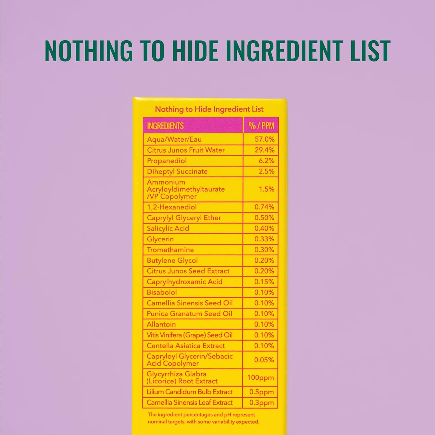 - Active Ingredients : Salicylic Acid, Yuzu Fruit and Seed Extracts, Bisabolol, Allantoin, Centella Asiatica