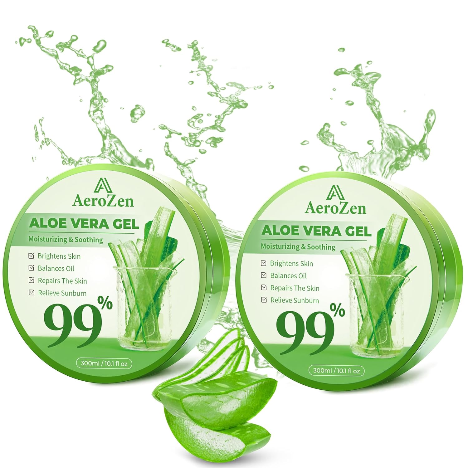 Aero Zen 99% Pure & Organic Aloe Vera Gel - 2-Pack (20.2oz) | Daily & Sun Care Hydration | Lightweight, Non-Greasy, Alcohol-Free for Face, Body, Hair | Vegan