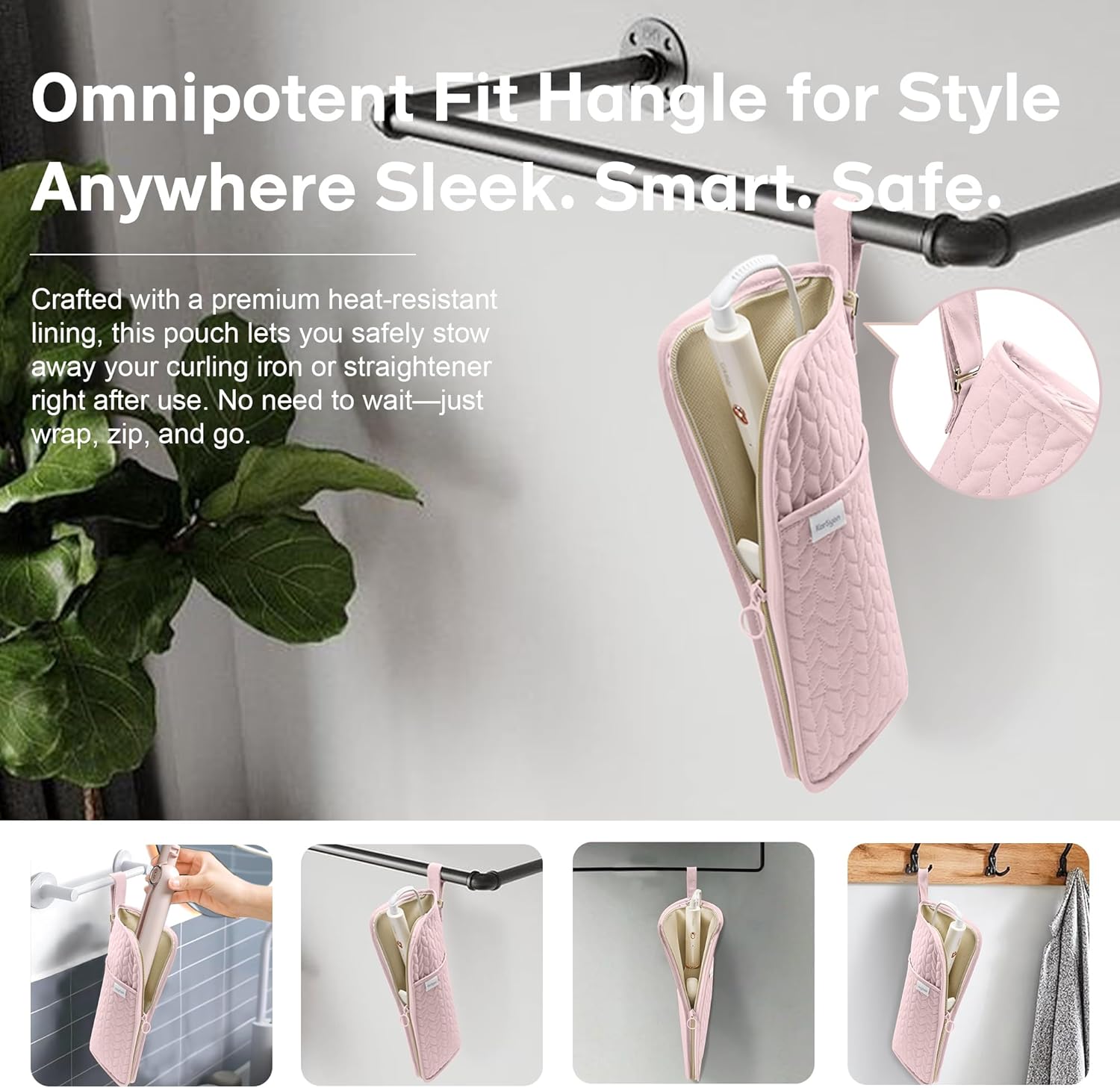 - Dual Pouch & Mat Design: Experience the ultimate convenience! This 2-in-1 design functions as both a heat-resistant mat and a convenient storage pouch. It allows you to safely pack away hot hair-styling tools immediately after use—no need to wait for them to cool—protecting your countertops and ensuring safe transport.