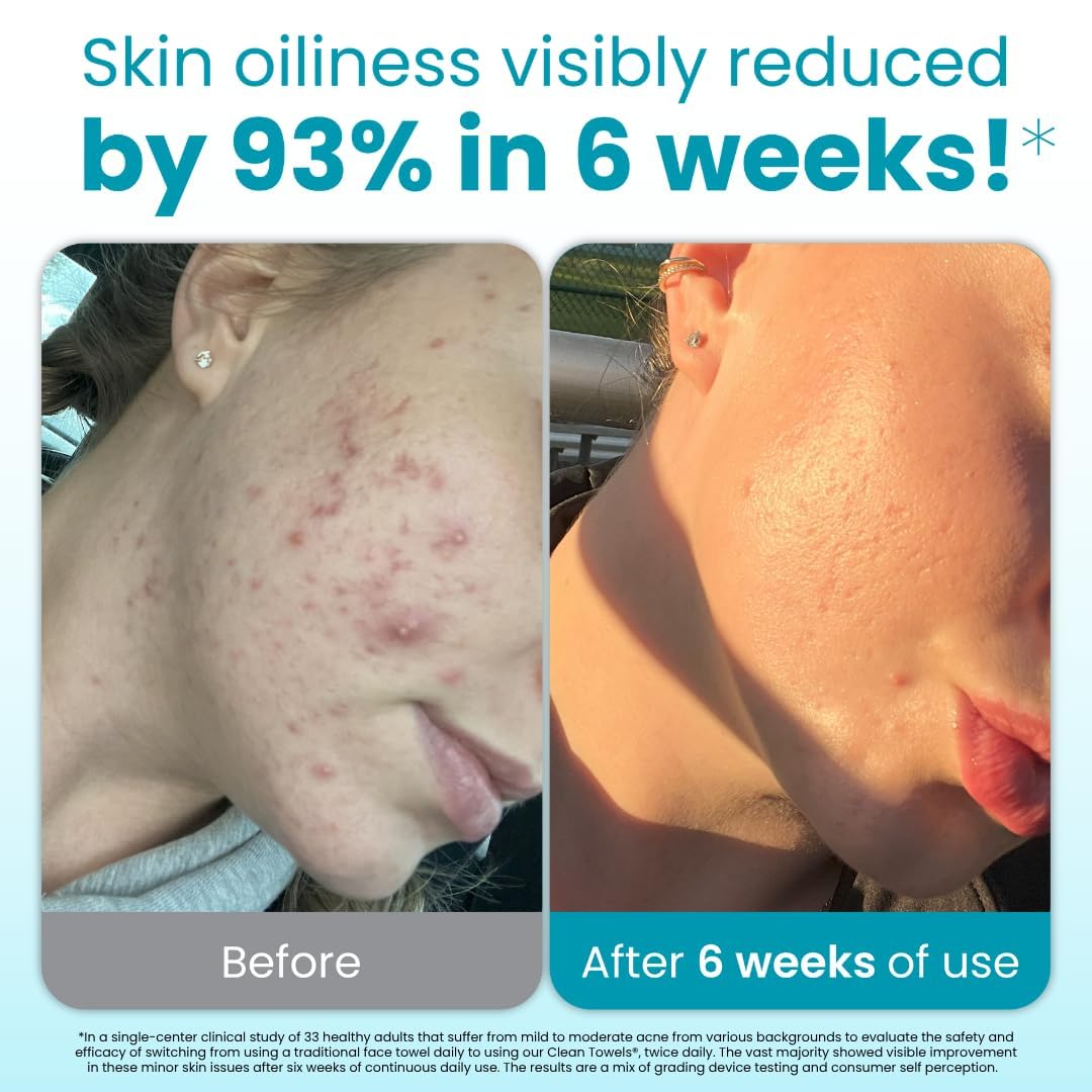 - The face towel for blemish-prone skin - Dermatologist-approved and clinically shown to help with excess oil and visible redness in 3 weeks or less