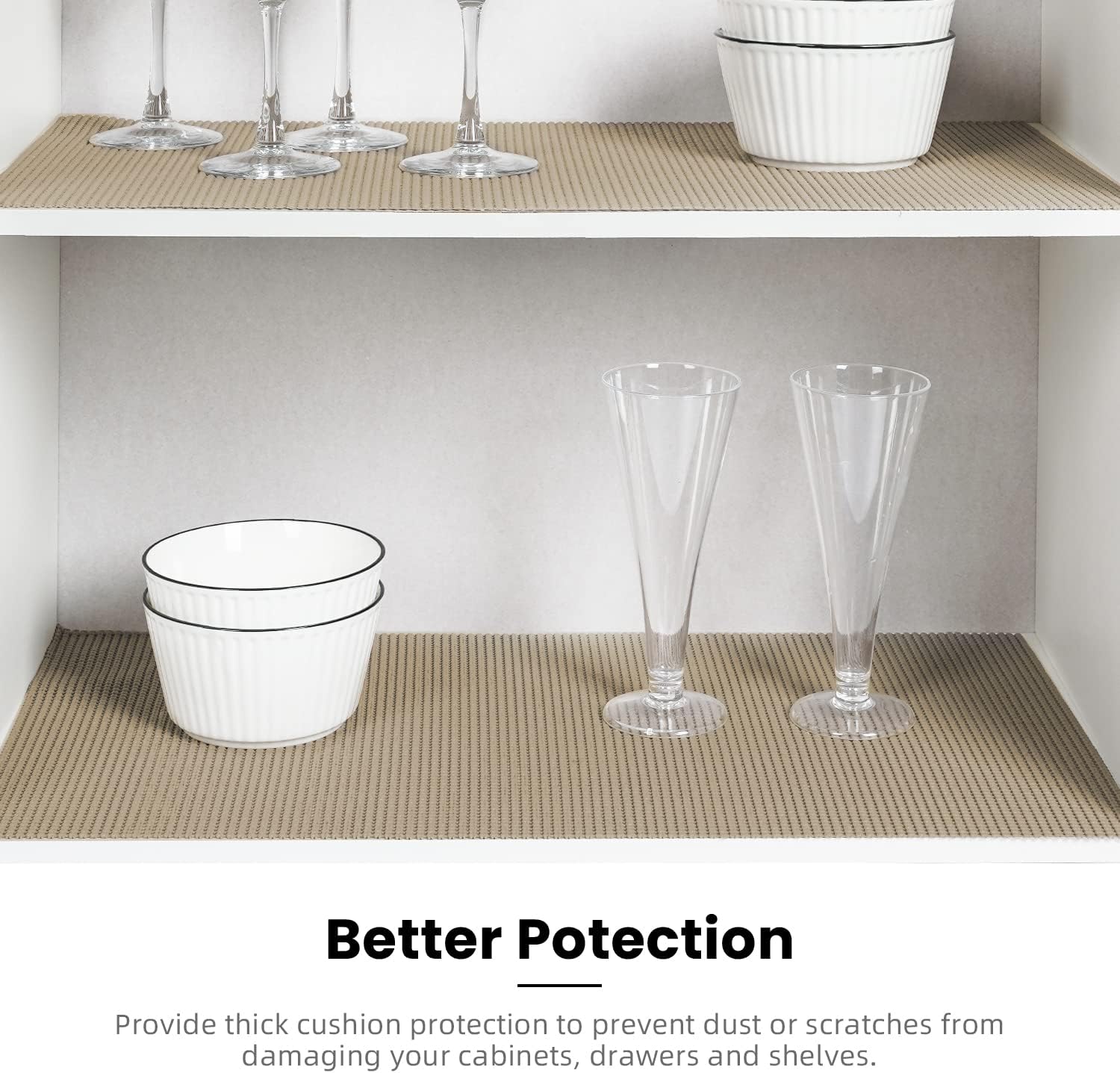 BAGAIL Drawer and Shelf Liner, 20 in X 10 Ft Non-Adhesive Shelf Liners for Kitchen Cabinets, Thick Strong Grip Liners for Desk, Shelves, Bathroom Drawers, Cabinet Protection - Beige