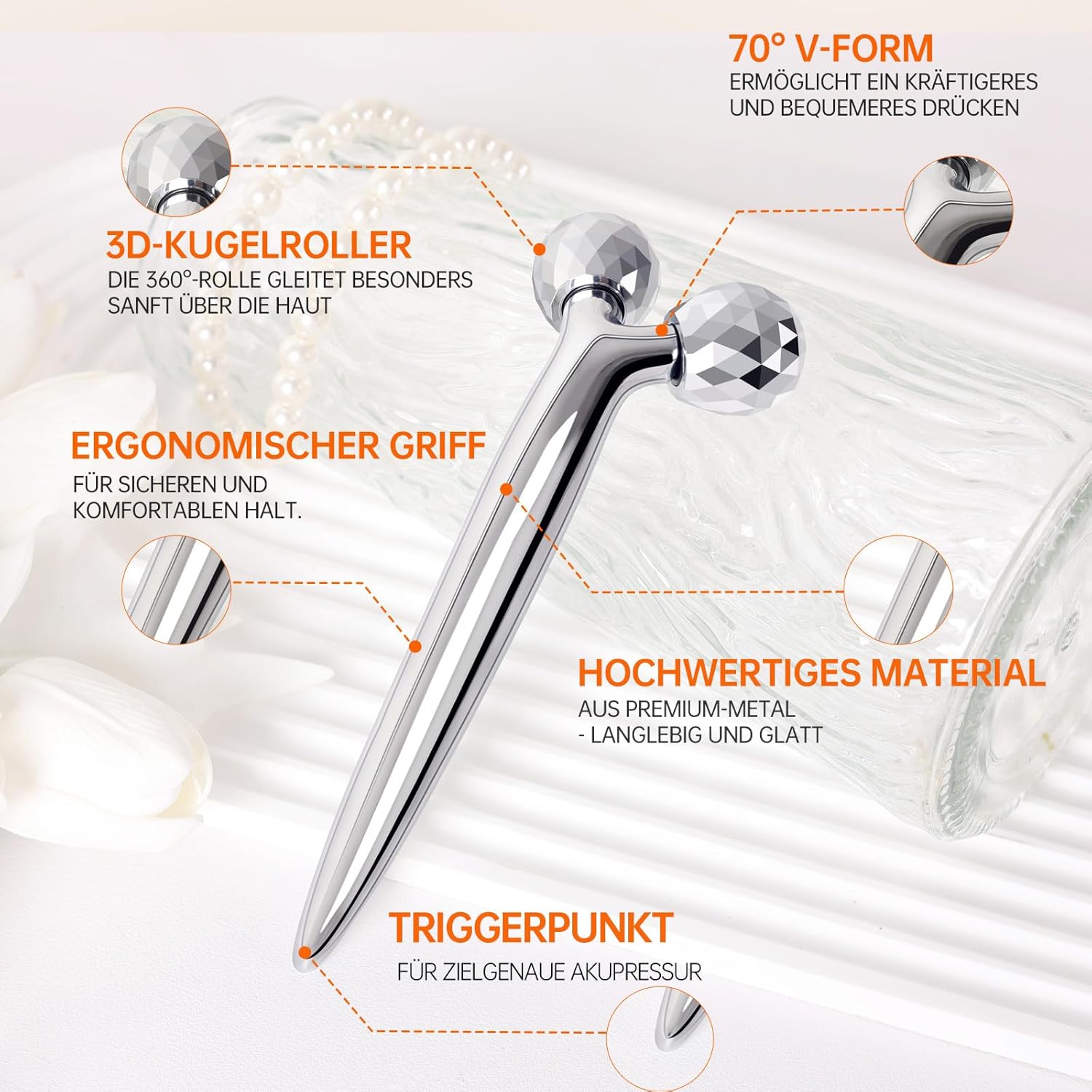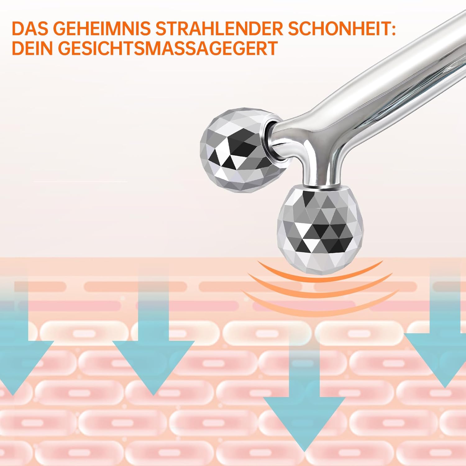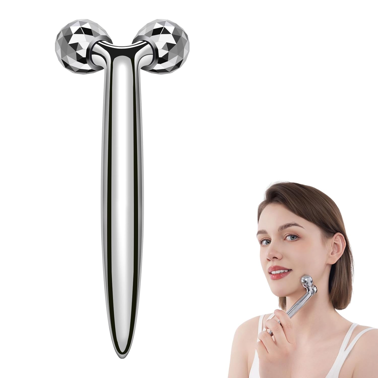 Metal Facial Roller Massager, 3D Cooling Face Massage Tool for Reduce Puffiness, Remove Eye Wrinkles, Face Lifting, Increase Firmness, Anti-Aging, Skin Tightening