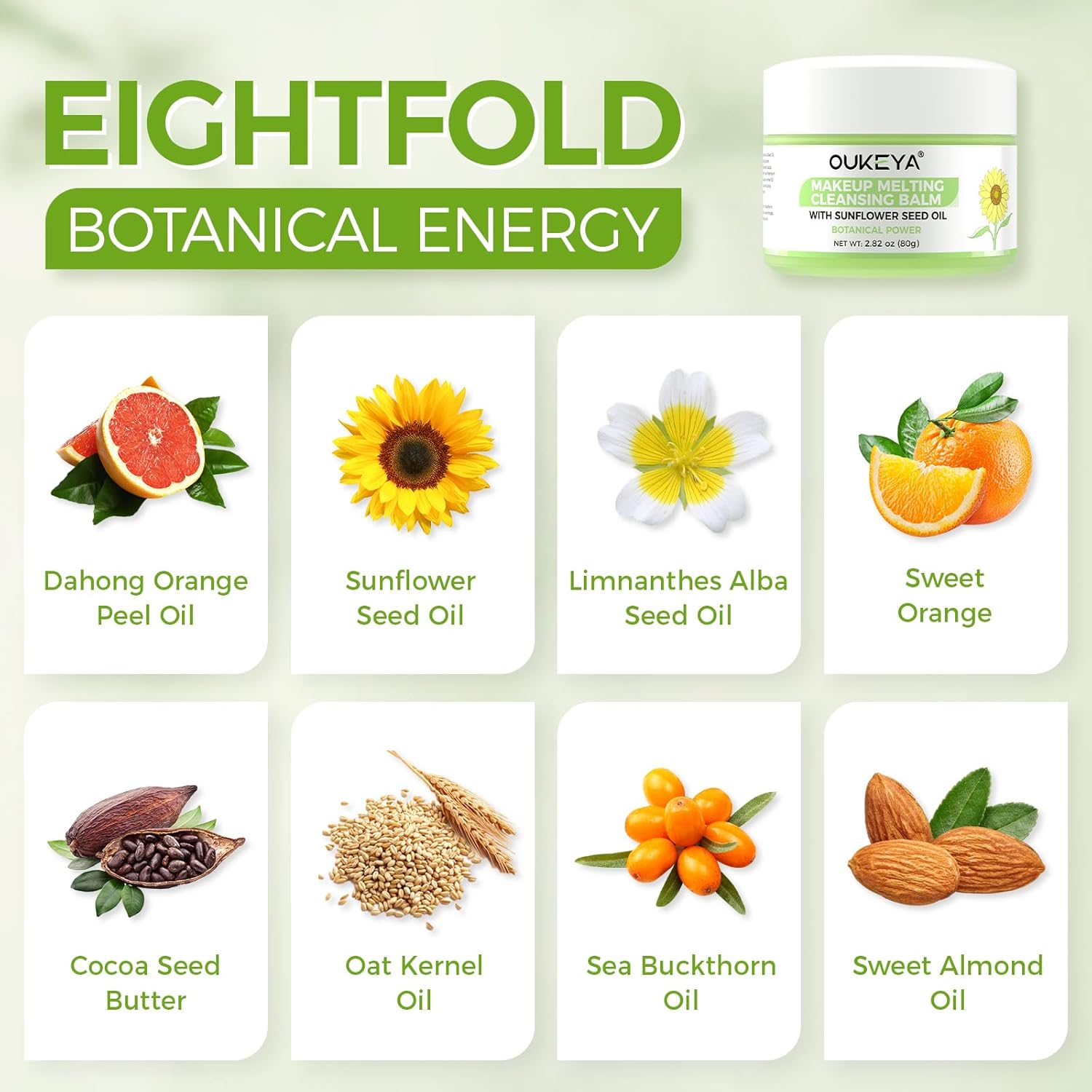 - Effective Cleansing Balm for Heavy Makeup Removal: OUKEYA Cleansing Balm is designed to gently dissolve and remove all types of makeup, including waterproof mascara and long-wear foundation, in just seconds—simply massage, rinse, and enjoy clean, soft skin without excessive rubbing