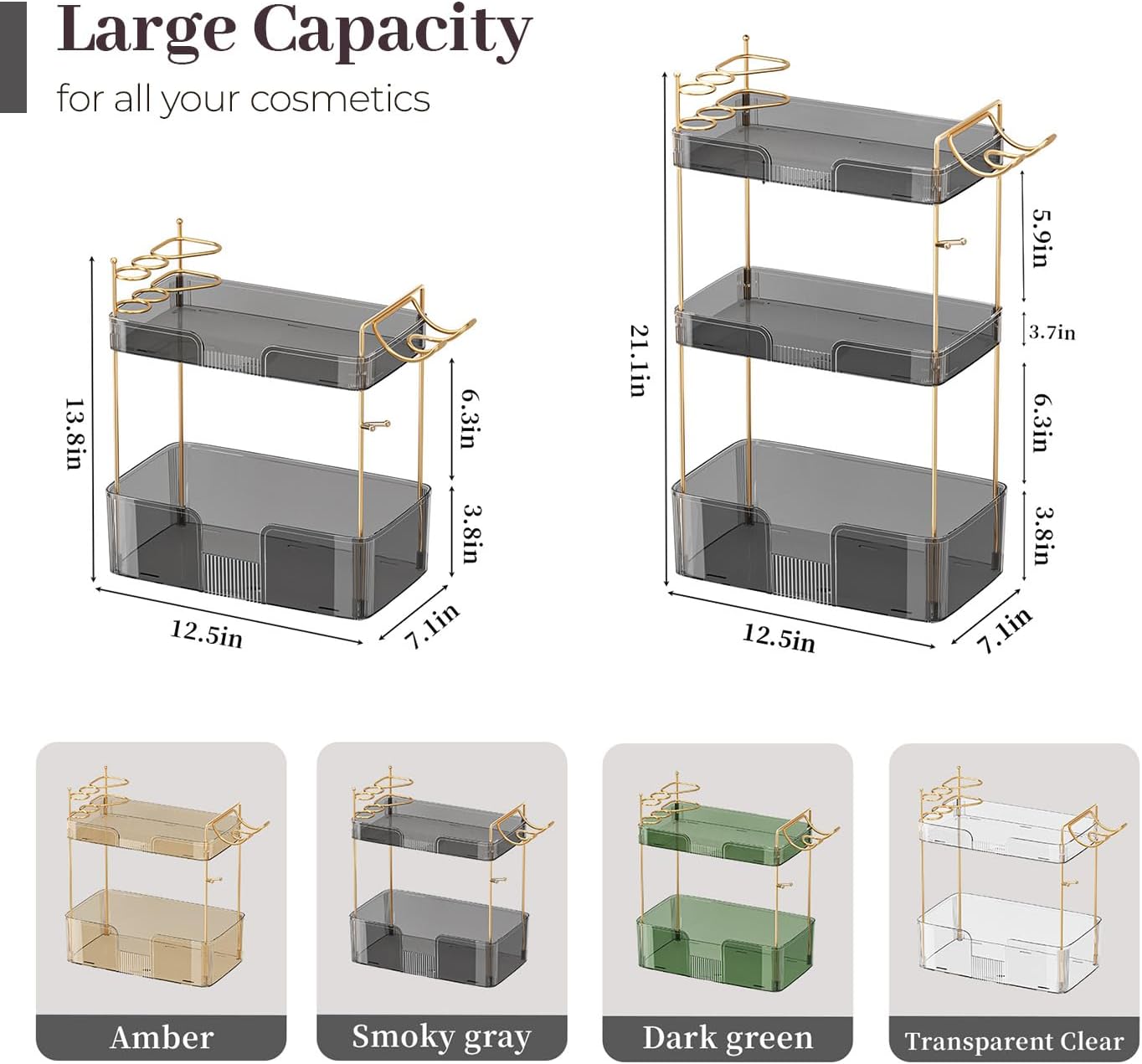 - VERSATILE ORGANIZATION - Perfect as a 3-tier makeup organizer, bathroom countertop storage, or skincare display, this space-saving solution transforms cluttered counters into stylish beauty stations effortlessly.