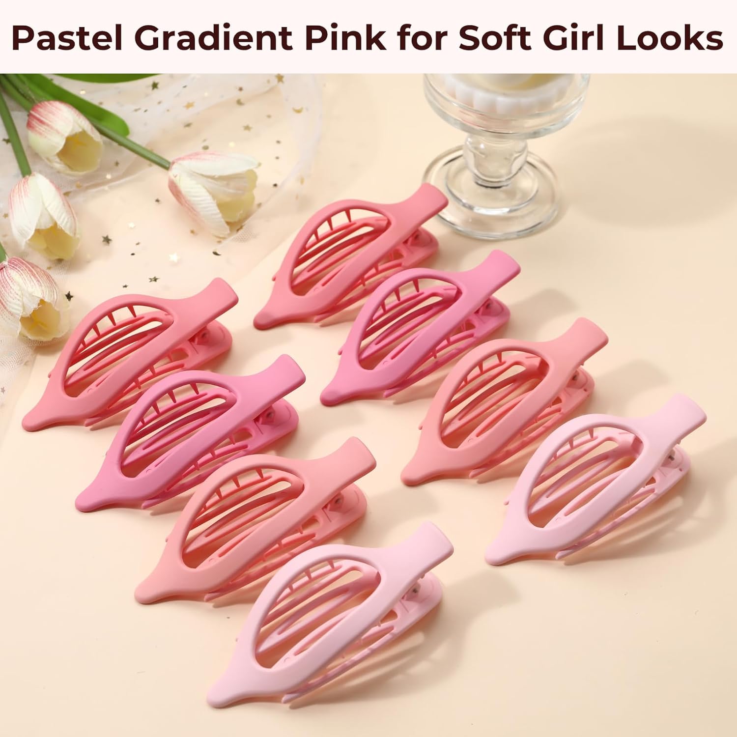 8 Pack Pastel Pink Flat Hair Clips – Cute Matte Gradient Claw Clips for Girls & Women, Strong Hold No-Slip Barrettes for Thick or Thin Hair, Aesthetic Soft Girl Style Accessories
