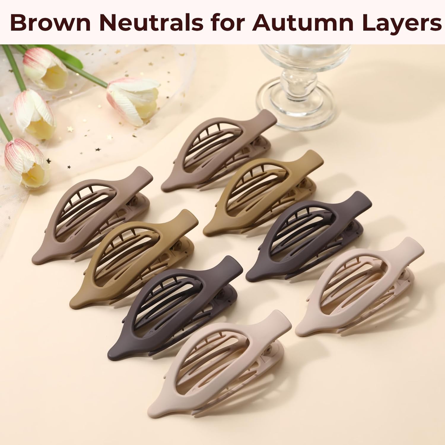 8 Pack Flat Brown Hair Clips – Neutral Matte French Brown Claw Clips for Women, Strong Hold Non-Slip Hair Barrettes for Everyday Office or Coffee Look