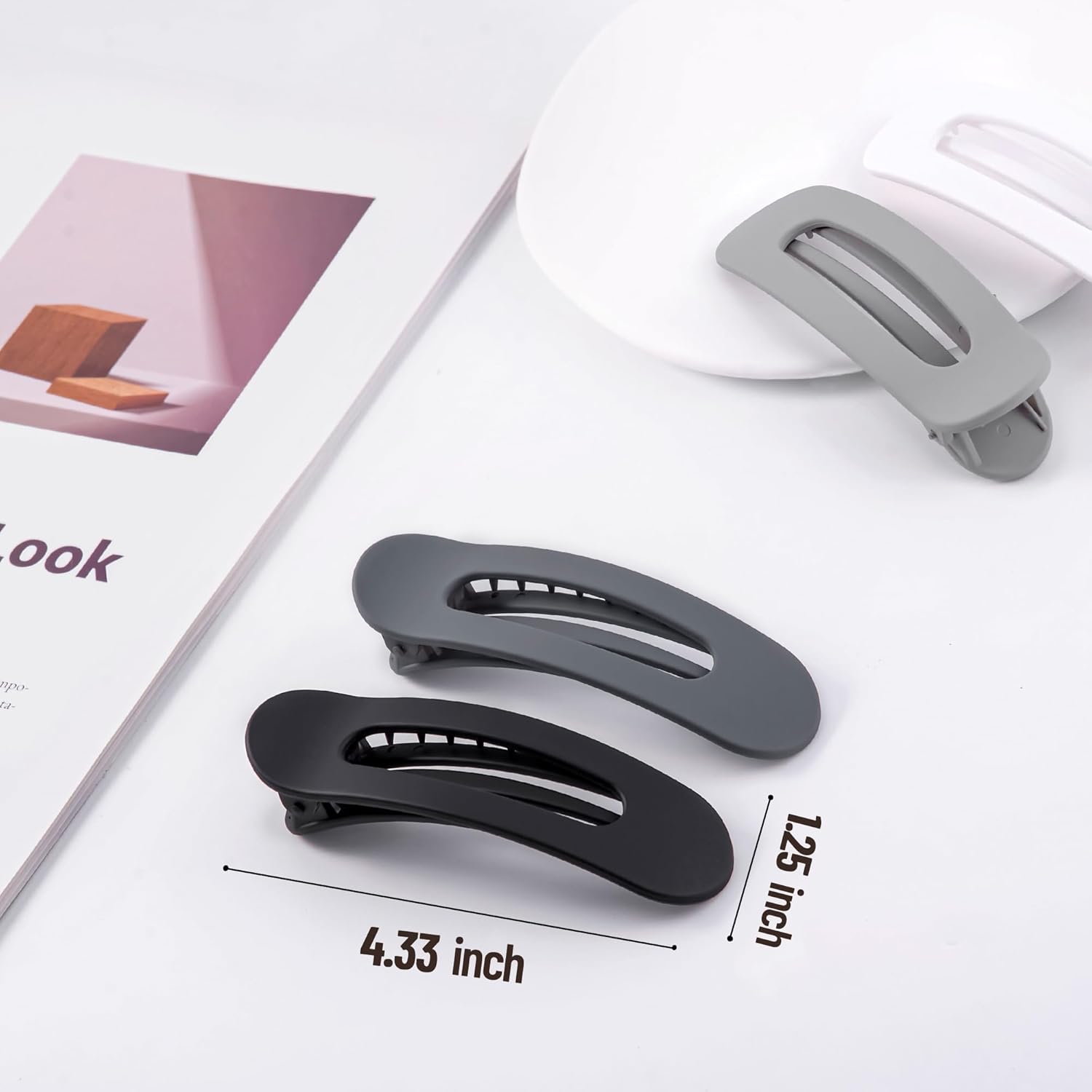 - 【Color and Size】The large flat clip set is 4.33x1.25inches in size,comes in 4 colors,with 2 pcs of each color. The color scheme is harmonious and easily matches your clothing.